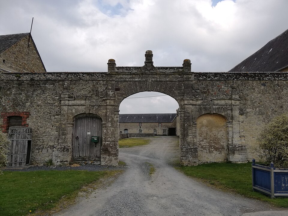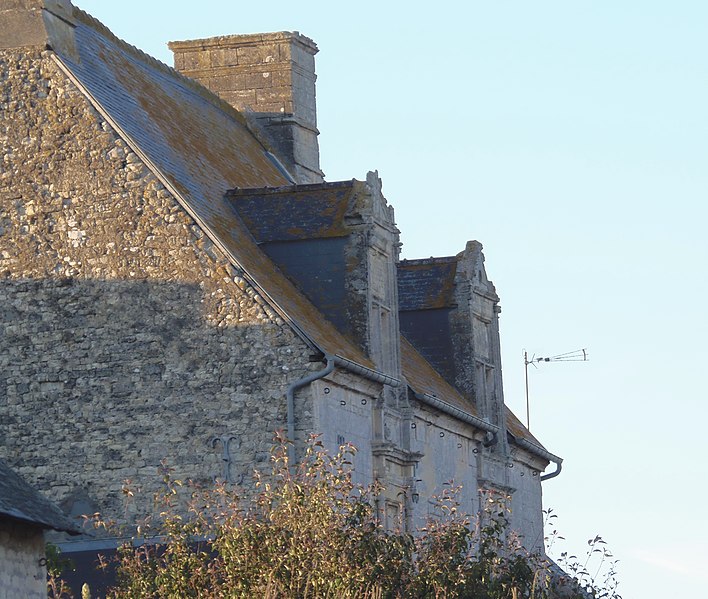 Le manoir de Campigny, également appelé ferme du Vieux Château, est une demeure des XVIe–XVIIe siècles située face à l'église Notre‑Dame, sur la commune de Campigny (Calvados, Normandie). On accède à la cour par un portail à triples ouvertures en anse de panier, surmonté d'un entablement à pinacles ; deux portes piétonnes encadrent une porte charretière. La façade présente un style Renaissance daté vers 1540 et le premier étage abrite une cheminée monumentale sculptée de médaillons historiés, de rinceaux et de losanges portant les armoiries des Meslin, alliés en 1572 aux héritiers des Hamon, seigneurs de Campigny dont les gisants se trouvent dans l'église. Le manoir est partiellement protégé au titre des monuments historiques : le portail d'entrée et le corps de logis avec sa cheminée monumentale ont été classés par arrêté du 9 avril 1932, et les façades et toitures du pavillon situé dans la cour ont été inscrites par arrêté du 13 avril 1933. La cour et le logis seigneurial, ainsi que des détails du corps de logis, sont également signalés dans le dossier de protection. Avant la Révolution, le fief de Saint‑Maurice relevait de la seigneurie de Campigny.
