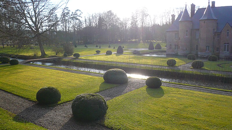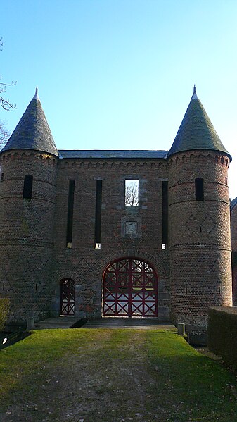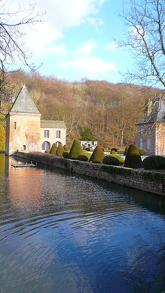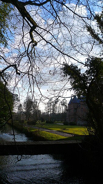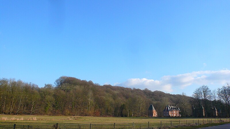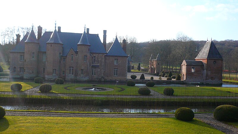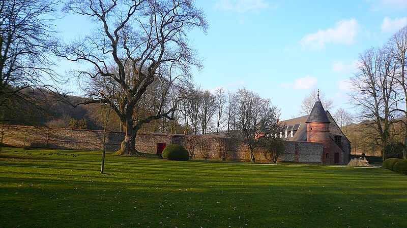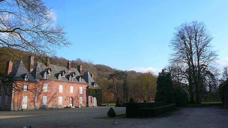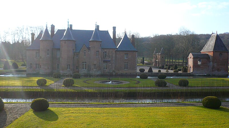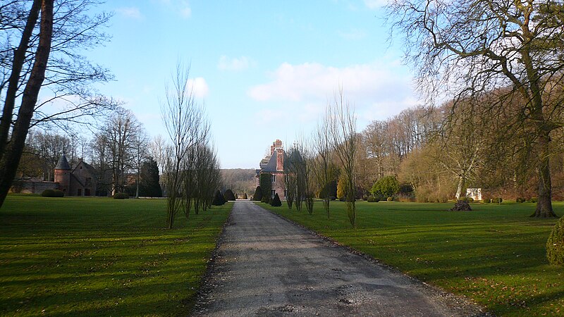 Le Manoir de Bimorel, appelé aussi château d'Imbleville et parfois la « Perle de la Saâne » ou « château du Vivier », se dresse à Imbleville (Seine‑Maritime, Normandie). Propriété privée non ouverte à la visite, la demeure est inscrite aux monuments historiques par arrêté du 1er février 1944. Édifié à la fin du XVe siècle en briques roses sur un îlot formé par la Saâne, le logis fut élevé en 1491 par Janon (Zanon) de Dampierre et son épouse Marie de Gouvis, comme l'indique une inscription conservée au‑dessus de l'ancienne porte d'entrée. Implanté le long de la route de la vallée de la Saâne, entre Imbleville et Auzouville‑sur‑Saâne, le manoir cherchait à contrôler le passage de la vallée en profitant de la forme du cours d'eau. En 1597 la terre et le château furent acquis par Nicolas Baudry, avocat au Parlement de Normandie ; son fils Charles y mourut en 1651 et leurs descendants conservèrent le domaine jusqu'au début du XVIIIe siècle. Après divers partages, le domaine revint à Pierre‑Eustache de Dampierre, qui mourut en 1795 ; en 1801 la terre fut attribuée à l'aînée de ses filles, devenue l'épouse du marquis de Bimorel. Le dernier Bimorel mourut en 1842 ; son gendre Louis de Folleville hérita du domaine et le transforma au XIXe siècle en l'agrandissant et en l'entourant d'un parc alimenté par des eaux vives. Leur fils Daniel de Folleville de Bimorel y naquit le 5 janvier 1842. Entre 1917 et 1961, d'importants travaux de réfection furent menés par Madame de Saint Rémy et son fils Gilbert ; ils firent notamment installer, au pied de la colline boisée, un élégant escalier à double révolution provenant de l'ancien château des ducs d'Elbeuf. En 1987 la demeure appartenait au comte et à la comtesse de Boigne. Le château et les bâtiments annexes forment un ensemble harmonieux malgré leur apparence disparate : deux ailes carrées flanquent l'ancien corps de logis et, autour, le parc comprend pièces d'eau, canaux, jardins et douves alimentées exclusivement par des sources indépendantes de la rivière. À l'origine la Saâne atteignait la face sud de la cour et se partageait en deux bras qui défendaient la demeure ; au nord s'élevaient quatre tours — dont deux subsistent — abritant la herse et le pont‑levis, seul accès d'autrefois, tandis que des bâtiments de service se développaient entre la chapelle et ce passage. À l'est, une longue galerie à arcades en plein cintre reliait l'étage du logis à celui de la chapelle et servait de nef pour le public le dimanche. Au sud, un mur crénelé et une vaste tour sud‑ouest furent abattus au XIXe siècle. Entre 1850 et 1860 la Saâne fut détournée pour éviter les inondations et les douves actuelles furent creusées. Les vues du site présentent la tour carrée, les douves, l'escalier à double révolution au pied de la colline, l'entrée sud‑ouest avec son allée et la cour centrale, l'ancienne porte munie autrefois d'un pont‑levis, le potager derrière le mur, ainsi que le corps de logis principal et les aménagements d'eau qui structurent le parc.