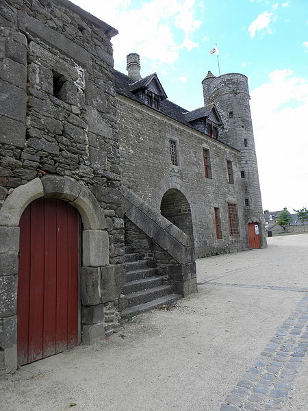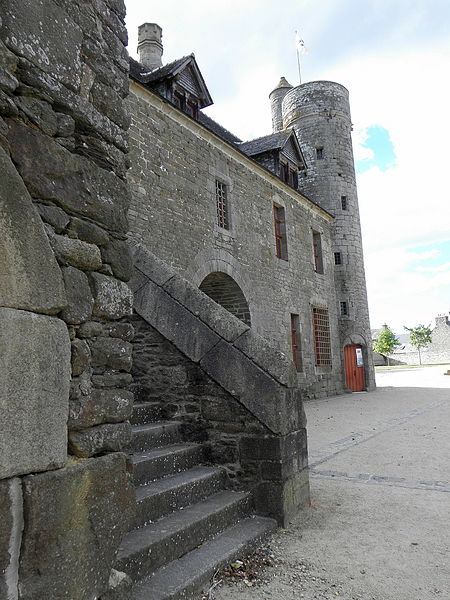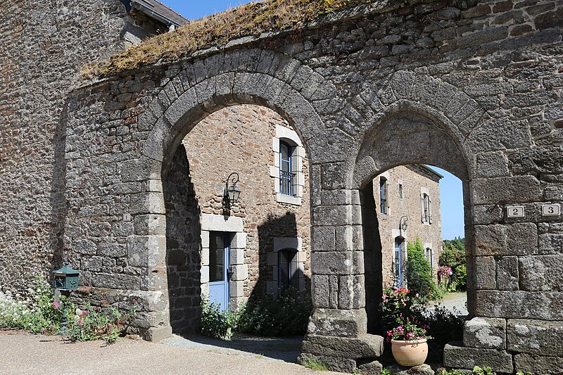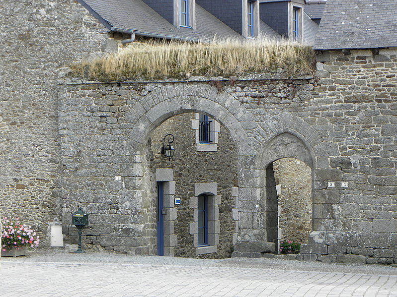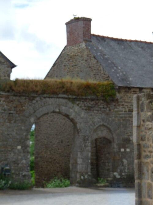 Le manoir de la Grand-Cour s'élève au centre d'un espace clos et fut la principale résidence seigneuriale de la vicomté de Taden, relevant de Dinan. Exemplaire de logis-porche, il se compose de deux corps : la résidence seigneuriale au nord et une seconde résidence au sud, séparées au rez-de-chaussée par une porte charretière. La haute tourelle d'escalier, contemporaine de l'ensemble, est couronnée d'une plate-forme flanquée d'un tourillon en encorbellement ; la porte possède un tympan lisse qui portait autrefois un blason peint. Ces éléments — tourelle et tourillon — sont caractéristiques des constructions de ce type en Côtes-d'Armor. Les façades conservées du logis datent de la fin du XIVe siècle ; la tour, située en angle, comporte une vis avec relais donnant accès à la plate-forme de guet. Le changement d'appareil, avec des moellons plus petits sur la face arrière de la tour, suggère que cette face n'était pas visible depuis la cour ancienne. Au-dessus du passage voûté, une imposante console révèle l'emplacement d'une coursière en bois menant à un bloc de latrines aujourd'hui disparu, dont les arrachements subsistent ; la porte haute du pignon nord atteste quant à elle l'existence d'un hourd disparu reliant également à des latrines. L'implantation, l'orientation inhabituelle du logis et son rôle de corps de passage indiquent l'existence probable de bâtiments aujourd'hui disparus dans la basse-cour et la cour.