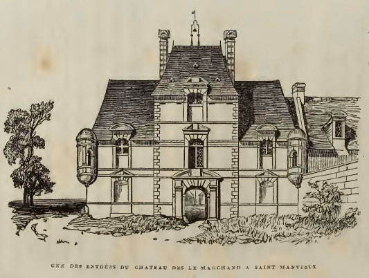 Le manoir de la Mare se situe au lieu-dit Ferme de la Mare, sur la commune de Saint-Manvieu-Norrey (Calvados). Le fief de Saint-Manvieu-Norrey entra dans la famille Le Marchand au cours du XVIe siècle. Le commanditaire du manoir, Pierre Le Marchand, trésorier général de France pour la généralité de Caen, appartenait à cette lignée caennaise qui possédait aussi le fief d'Outrelaize à Gouvix. À la mort de son oncle en 1621, sans héritier, Pierre reçut les terres fieffées de Saint-Manvieu, tandis qu'Outrelaize revint à un autre neveu, Jacques Blondel de Tilly. Les plaques de fondation encore en place indiquent que la construction débuta par l'aile nord (1623) et s'acheva par le pavillon d'entrée (1629), le portail latéral portant la date de 1632 donnant une borne pour l'ensemble manorial. Les bâtiments subsistants sont généralement datés de la première moitié du XVIIe siècle, certains documents précisant la période 1625-1627. Un vaste portail et un beau pavillon d'entrée ouvrent sur une vaste cour encadrée par deux grands corps de bâtiment perpendiculaires aux façades imposantes. L'architecture, sobre et monumentale, est comparable aux communs du château d'Outrelaize, également attribués aux Le Marchand, et illustre l'architecture civile du début du XVIIe siècle dans le Bessin. Au cours des XVIIe et XVIIIe siècles, l'édifice comprit un hôpital et une chapelle dédiée à sainte Anne, cette dernière décorée de peintures. Le manoir est inscrit au titre des monuments historiques depuis le 30 août 2000 ; sont notamment protégés les trois cages d'escalier munies de plaques de fondation, quatre cheminées du premier étage, la chapelle avec ses peintures, ainsi que le mur de clôture et le portail. À la fin du XXe siècle, le site a servi de ferme et a accueilli un enseignement privé, le cours Sainte Catherine de Sienne. On relève également, à l'intérieur du manoir, des graffitis évoquant La Belle Poule et le combat du 17 juin 1778.