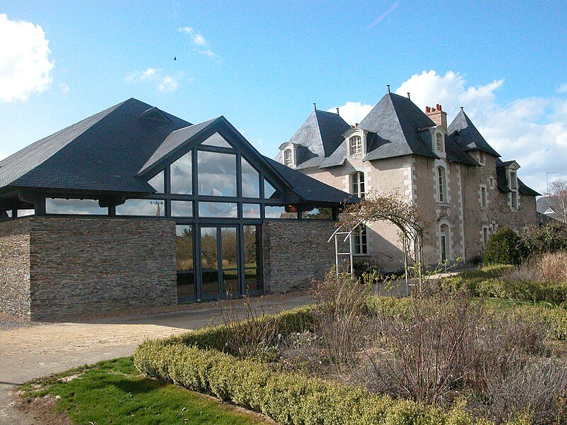 Les Dugrat et les Fouquet avaient jadis entouré la propriété de douves et de murs ; lors du redécoupage paysager la douve sud subsistait encore. En 1991, le paysagiste Jacques Courilleau a conçu un jardin rectangulaire divisé en quatre compartiments comprenant une roseraie en parterres bordés de buis autour d'un bassin, une charmille formant un labyrinthe et deux carrés de pelouses séparés par des allées bordées d'arbres fruitiers, d'arbres de haute tige, d'arbustes et de vivaces ; pour des raisons de sécurité, l'ancienne douve a été comblée et engazonnée. En 1999, un nouveau bâtiment destiné à la médiathèque, conçu par François Jeanneau, a été édifié sans emprise sur le logis ancien : construit en murs de schiste avec une charpente bois et couverture en ardoises, il adopte le principe d'une halle et relie le logis par une coursive vitrée sur deux niveaux.