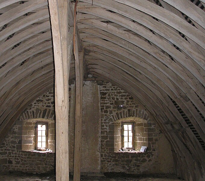 Le manoir de Mebzon est une demeure des XIVe–XVe siècles située sur le territoire de l'ancienne commune de Sept-Forges, aujourd'hui rattachée à Juvigny-Val-d'Andaine, dans le département de l'Orne en Normandie. Implanté en bordure immédiate de la Mayenne, à l'endroit où la rivière effectue un coude à 90°, il conserve des traces d'une chapelle au sol. Historiquement, Sept-Forges relevait de la province du Maine après une annexion temporaire au duché de Normandie par Guillaume le Conquérant en 1050, le fief de Mebzon repassant ensuite au comté du Maine; un Guillaume de Mebzon est mentionné au début du XIVe siècle. Le manoir, endommagé avant la Révolution, constitue un bel exemple d'architecture civile du Bas Moyen Âge en terre du Maine, avec une mise en œuvre de grande qualité. Entouré de douves, le logis a été diminué en plan par la destruction d'environ la moitié de ses maçonneries, ce qui lui donne une silhouette élancée. La façade postérieure est flanquée d'une tour polygonale abritant un escalier; le pignon ouest conserve deux baies géminées et la plupart des autres ouvertures sont à meneaux, les portes étant surmontées d'arcs en tiers-point. À l'intérieur, de vastes pièces conservent des fenêtres à meneaux, des coussièges et deux salles au premier étage aux volumes remarquables. De monumentales cheminées des XIVe ou XVe siècles, à l'austérité monacale, ponctuent ces espaces et n'ont été que peu altérées par les occupations successives. La charpente, en carène de navire renversée, ajoute au caractère authentique et puissant des lieux. Le manoir, à l'exception du bâtiment adossé au pignon nord, est inscrit au titre des Monuments historiques par arrêté du 22 décembre 1998.