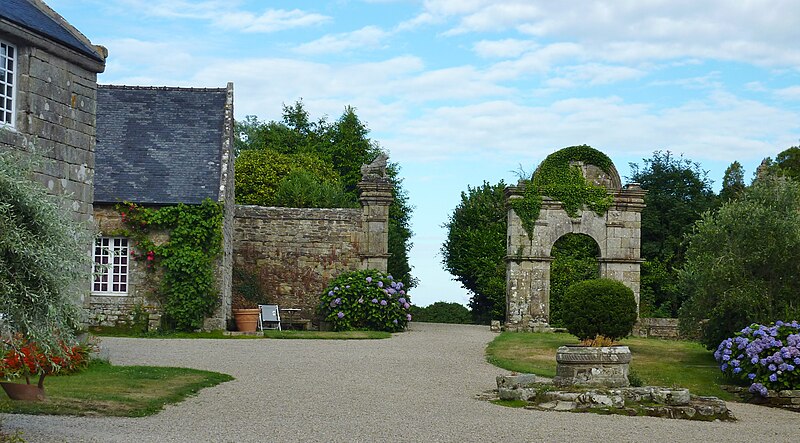 Manoir de la Renaissance composé de deux corps de logis. Le second présente une porte d'entrée encadrée de deux colonnes doriques et surmontée d'un fronton triangulaire. Une tour lui est accolée ; son comble repose sur une corniche à modillons et est percé de lucarnes à fronton circulaire. Le lieu était habité au début du XVe siècle et l'ensemble a été édifié par Nicolas de Moellien et Gabrielle de Goandour entre 1640 et 1665. L'édifice a été partiellement incendié à l'époque révolutionnaire ; on y relève des marques de tâcherons et des restaurations ont été entreprises après 1965.