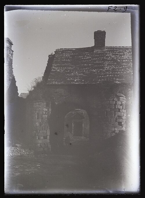 Façades et toitures des communs et du pigeonnier ; mur de clôture des quatre enclos, y compris la double entrée de l'enclos principal (cad. ZB 52, 96, 97, 100 à 102) : inscription par arrêté du 30 mai 1984