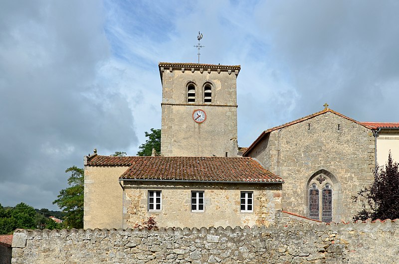 L'église Saint-Jouin, de style gothique tardif, a été édifiée à la fin du XVe siècle ou au début du XVIe. Elle aurait vraisemblablement été un prieuré-cure dépendant de l'abbaye de Saint-Jouin-de-Marnes. L'édifice présente un plan en croix latine, renforcé de contreforts, et se termine par un chevet plat. La nef, sans collatéraux, compte deux travées voûtées d'ogives, tandis que le sanctuaire est couvert d'un berceau brisé. Une chapelle ajoutée au chœur, côté sud, daterait probablement du XVIIe siècle. Le portail s'inscrit dans un arc en accolade et est cantonné de fines colonnettes. Le clocher, de plan carré, s'élève au-dessus du bras de transept sud.