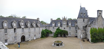 L'aile est, la plus ancienne, présente des fenêtres à meneaux avec linteaux en accolade, une tour d'angle et un encorbellement de pierre marquant la transition entre trois et deux murs. Plusieurs éléments — meneaux, rampants à crochets et pinacles — témoignent de la persistance du gothique flamboyant en Bretagne, malgré les apports postérieurs. Le corps de logis central au nord et les anciens communs à l'ouest relèvent d'un vocabulaire plus classique, avec une alternance de gerbières à fronton triangulaire ou arrondi. Au centre de la cour se trouve une vasque monolithique du XVIe siècle d'inspiration italienne. Le grand salon a été lambrissé à la fin du XVIIe siècle et le mobilier qui y figure date du XVIIIe siècle. Sur le portail de l'aile droite figurent les armoiries en alliance d'Olivier de Kergoët et de sa femme Marie du Louet, seigneur et dame de Tronjoly en 1580. Une chapelle du XIXe siècle et le pavillon du chapelain encadrent la terrasse méridionale.