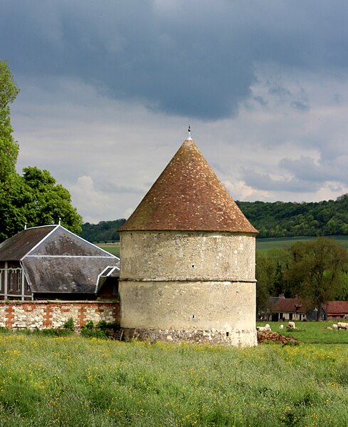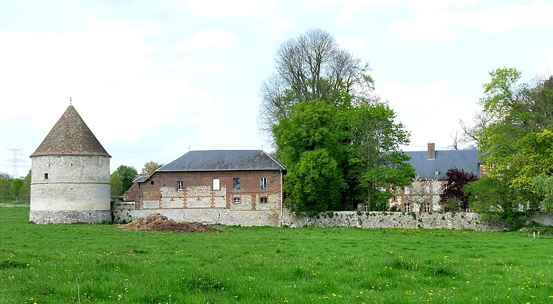 Le manoir de Vardes, situé à Neuf‑Marché (Seine‑Maritime) au lieu‑dit « ferme de Vardes » sur la route départementale 915, est inscrit au titre des monuments historiques depuis le 24 juillet 2002. Construit vers 1575‑1585 par la famille du Bec Crespin, il répondait à des fonctions à la fois seigneuriales et défensives. Les bâtiments en brique, avec chaînages en pierre calcaire — portail, granges, colombier et logis — s’organisent autour d’une cour rectangulaire et conservent plusieurs dispositifs de défense, notamment des canonnières au colombier, des fossés résiduels et une échauguette. Une campagne de construction a également été conduite sous l’impulsion de Jacqueline du Bueil, comtesse de Moret. Entre 1630 et 1665, René de Vardes et son fils François, proches de la Marquise de Sévigné, entreprennent de nombreuses transformations ; un grand corps de bâtiment en maçonnerie à décor en bossage de brique, flanqué d’un pavillon à l’est, est élevé en travers de l’enclos. Le projet, qui semble avoir visé à « castelliser » le manoir en édifiant un château résidentiel distinct de la ferme, n’a pas abouti. À partir du XVIIIe siècle, le manoir est affecté à l’exploitation agricole, vocation qui perdure jusqu’à une époque récente. L’ensemble présente une architecture mêlant brique et pierre, témoignant des phases de construction et d’aménagement des XVIe et XVIIe siècles.