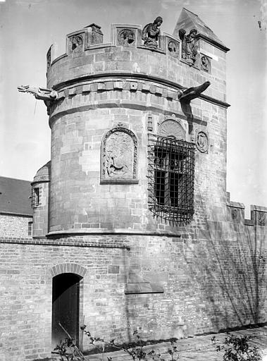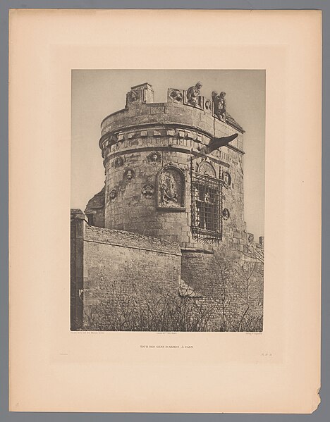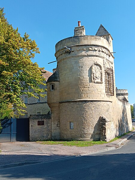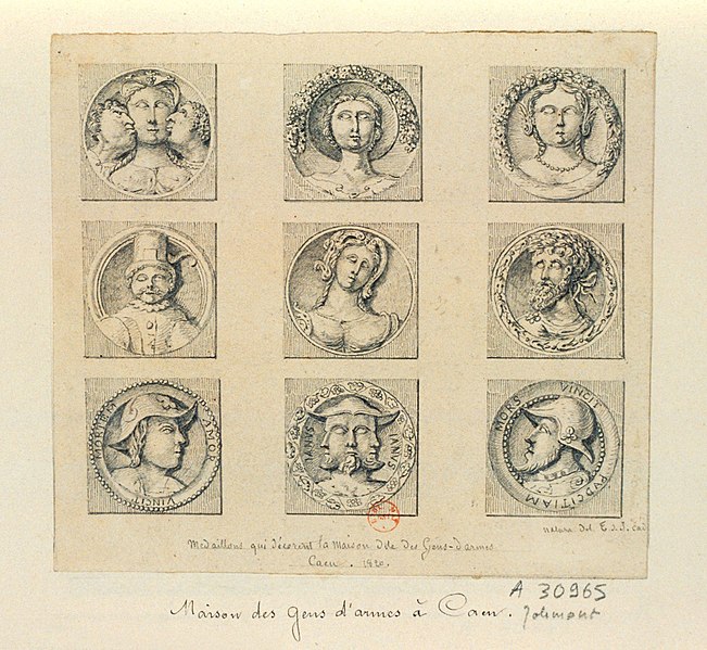 La Maison dite des Gens d'Armes, aussi appelée manoir de Nollent ou de la Talbotière, est un manoir de la première Renaissance construit en pierre de Caen et classé au titre des monuments historiques en 1862. Il se situe au nord de la rue Basse, dans la vallée de l'Orne, en contrebas de l'ancien village de Calix dépendant de Bourg-l'Abbesse ; à l'origine il se trouvait au nord d'un méandre de l'Orne avant la canalisation et, depuis le percement du canal de Caen à la mer, se trouve à proximité de celui-ci. Entouré d'un environnement largement rural jusqu'au milieu du XXe siècle, il a ensuite été intégré à l'espace urbain. Le domaine était connu au XIIIe siècle sous le nom de la Talbotière et appartenait à Alexandre de Couvre-chef, seigneur de Cresserons, qui y fit édifier un premier manoir. En 1436 il revient à Jean de Couvrechef ; en 1487 la terre et le manoir sont donnés en dot à Guillemine lors de son mariage avec Philippe de Nollent, seigneur de Saint-Contest et avocat du roi à Caen. Leur fils Gérard hérite et fait édifier un nouveau manoir qu'il place sous la devise « Amor vincit Mortem », la construction étant estimée entre le règne de Louis XII et le début de celui de François Ier selon l'abbé de la Rue. Gérard épouse ensuite Marguerite de Clinchamps ; en 1571 la demeure passe à Philippe de Nollent et à Michelle d'Harcourt, puis, en 1619, elle entre dans les possessions de François Le Révérend, sieur de Calix, puis de son frère Michel, sieur de Bougy, et demeure dans cette famille. Aux XVIIIe et XIXe siècles le manoir prend une vocation agricole : une ferme est installée sur l'emplacement du mur hémicycle du jardin clos et, en 1891, Eugène Liot décrit une porcherie, deux étables et un magasin, le jardin servant de basse-cour. Liot note que la maison d'habitation, réparée, conserve une tourelle carrée, une frise de feuillages et deux médaillons, tandis que certaines sculptures et une gargouille ont disparu. Classé en 1862, le manoir fait l'objet d'une restauration à la fin du XIXe siècle ; il abrite ensuite une cidrerie dans les années 1930. Après la Libération une cité d'urgence de baraquements est installée provisoirement dans le verger pour abriter des familles ; ces logements laissent place, dans les années 1970, à des immeubles collectifs construits à l'arrière du manoir. Les bâtiments sont partagés entre la Ville de Caen, pour la maison d'habitation, et l'État, ministère de la Culture, pour les tours et l'enceinte ; ces derniers ont accueilli les services régionaux chargés des antiquités et un dépôt lapidaire. Une campagne de restauration a lieu au début des années 1980, pendant laquelle les éléments sculptés très abîmés sont déposés pour conservation, puis le manoir est acquis au début des années 2000 par la Région de Normandie et affecté au Centre régional de culture ethnologique et technique ; il est enfin vendu à des particuliers le 4 novembre 2014. Selon le plan de François Bignon de 1672, l'ensemble comprenait à l'origine une enceinte fortifiée à quatre tours avec un mur nord en hémicycle et, au centre, le logis ; aujourd'hui subsistent les deux tours du sud reliées par une muraille et un logis remanié. La tour ouest, flanquée d'une tourelle côté cour, porte sur sa plate-forme deux statues d'hommes en armes en « attitude guerrière », figures qui ont donné au lieu son nom de Manoir des Gens d'Armes ; elle présente une grande fenêtre à chambranle encadrée d'un écusson non blasonné surmonté d'une salamandre, symbole de François Ier, et du reste de l'écusson des Nollent soutenu par deux griffons. Trois gargouilles ornaient sa partie haute ; au XIXe siècle il n'en subsistait qu'une, les autres ayant été rétablies lors de la restauration de la fin du siècle, puis protégées par des coffrets et finalement déposées en 2016 pour éviter leur chute. La tour est, plus petite, avait partiellement été effondrée puis restaurée ; elle était également ornée de statues et de gargouilles aujourd'hui déposées. Seul subsiste du système défensif le mur sud le long de la rue Basse, autrefois entièrement crénelé et orné de médaillons ; la plupart des créneaux ont été déposés lors de la restauration des années 1980, ne laissant que deux crénaux conservés. Le logis, reconstruit dans le style Louis XIII, abritait au premier étage une porte en bois du XVIe siècle richement sculptée de ceps de vigne et de feuillages, porte transférée au musée de la Maison de la Reine Bérengère. Le manoir possédait au total trente-sept médaillons — quatorze sur la courtine, quinze sur la tour ouest et huit sur le logis — encadrés en chapeau de triomphe ; ils représentent hommes et femmes, parfois antiques, et portent des légendes dont certaines rapprochées des Triomphes de Pétrarque, comme PUDICICIA VINCIT AMOREM, AMOR VINCIT MORTEM et MORS VINCIT PUDICICIAM. Ces médaillons ont été interprétés tantôt comme une allégorie amoureuse, tantôt comme des figures d'empereurs ou de personnages historiques ; plusieurs pièces portent des inscriptions controversées, notamment un médaillon lu « C'EST MA DORICHE ET AMIE » par Arcisse de Caumont et contesté par d'autres auteurs, et un personnage tricéphale légendé IANUS. Après des remaniements et réemplois au XIXe siècle, une restauration postérieure au classement a permis de remettre en place de nombreux médaillons ; des moulages de neuf d'entre eux furent réalisés pour le musée de la Sculpture comparée et figurent aujourd'hui à la Cité de l'architecture et du patrimoine, tandis qu'une grande partie des pièces endommagées a été déposée dans la collection lapidaire du musée de Normandie. Le manoir a par ailleurs inspiré plusieurs artistes et graveurs aux XIXe et début du XXe siècle.