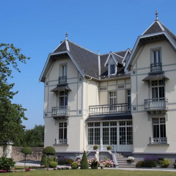 Le manoir du Grand-Moulin, situé à Condette dans les Hauts-de-France, trouve ses origines au XIVe siècle avec la création du fief du Grand Moulin. Cependant, les bâtiments actuels datent principalement de la seconde moitié du XVIIe siècle, avec des ajouts ultérieurs aux XVIIIe et XIXe siècles. L’ensemble s’organisait autrefois autour d’une cour dotée d’un abreuvoir, typique des fermes-manoirs de la région. Le corps de logis, construit en pierre de Baincthun, est flanqué de deux tourelles caractéristiques : l’une en encorbellement avec un campenard abritant une cloche classée en 1943, l’autre ronde, percée de meurtrières et coiffée d’une poivrière en tuiles plates. Ces éléments, ainsi que les percements d’origine sur la façade ouest, témoignent d’une architecture à la fois défensive et résidentielle, héritée du Moyen Âge mais adaptée à l’époque moderne.