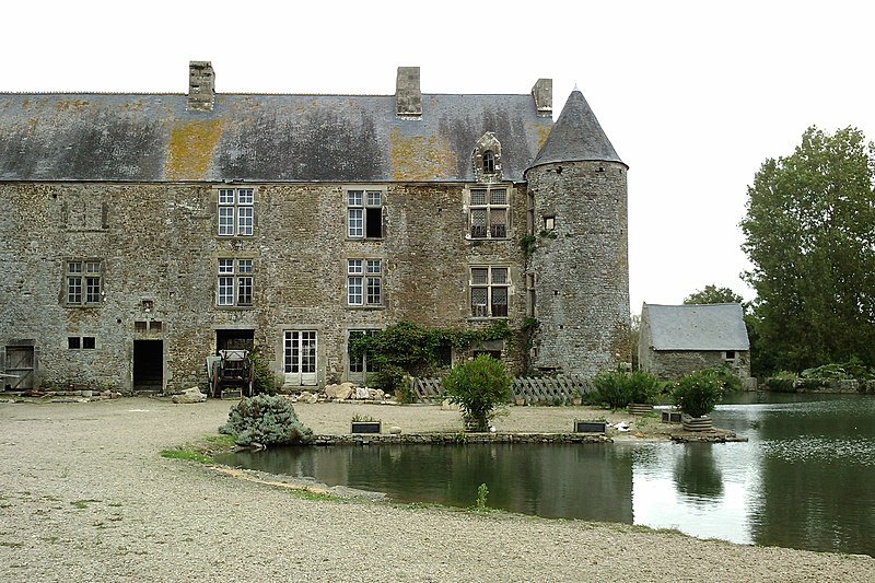 Le corps de logis principal et son aile en retour, l'ensemble défensif à l'ouest, la chapelle, les façades et toitures du pressoir et du moulin ainsi que, dans la basse‑cour, la grange, les communs ouest, les deux charreteries, le porche, les douves, le vivier et le jardin fossoyé sont inscrits au titre des monuments historiques par arrêté du 27 novembre 2000.