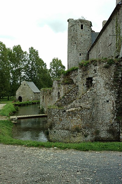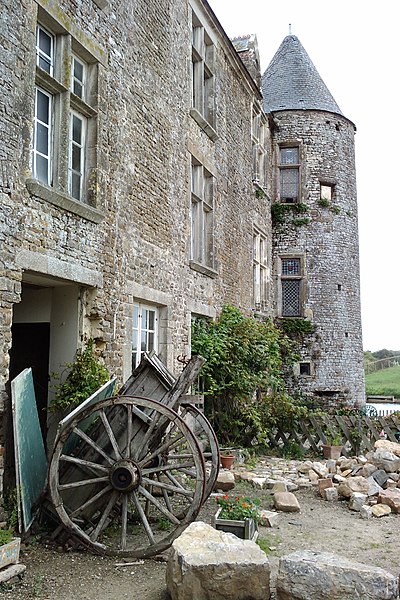 Le logis principal a été commencé vers 1400, enrichi d'adjonctions dans les années 1500‑1540 et achevé autour de 1600. Le bâtiment se présente comme un logis haut de deux étages ; il est flanqué à droite d'une tour cylindrique de la fin du XVe ou du début du XVIe siècle. La partie gauche est du XVIIe siècle et s'accompagne d'un corps en équerre qui comprend un pigeonnier et une tourelle. Dans la cour, autrefois accessible par une porte charretière en plein cintre aujourd'hui disparue, se trouve à droite une charreterie de la fin du XVIe siècle prolongée par une chapelle datée des environs de 1450 et percée de fenêtres de style gothique. Les communs s'étendent du XVe au XVIIe siècle et l'ensemble constitue un domaine seigneurial complet comprenant mur défensif, colombier, moulin, pressoir, douves, vivier, jardin fossoyé et bâtiments agricoles en cour fermée autour du logis. Sur les murs de la chapelle, visibles par temps sec, subsistent des fragments de blasons peints, dont ceux des familles de Thieuville et du Mesnildot.