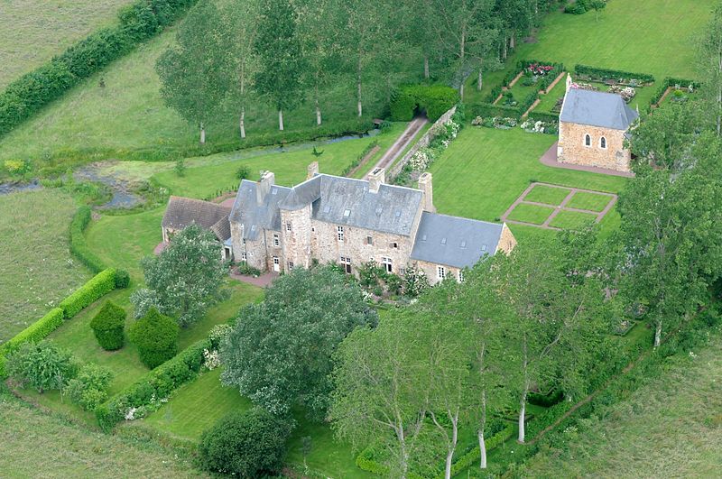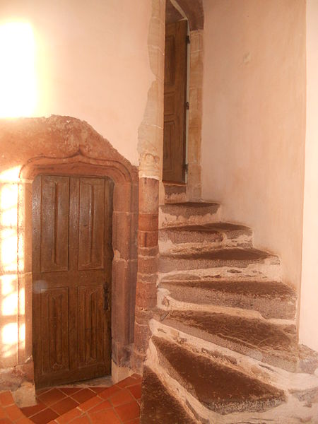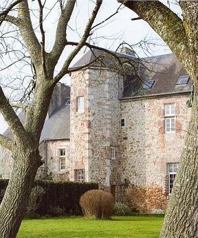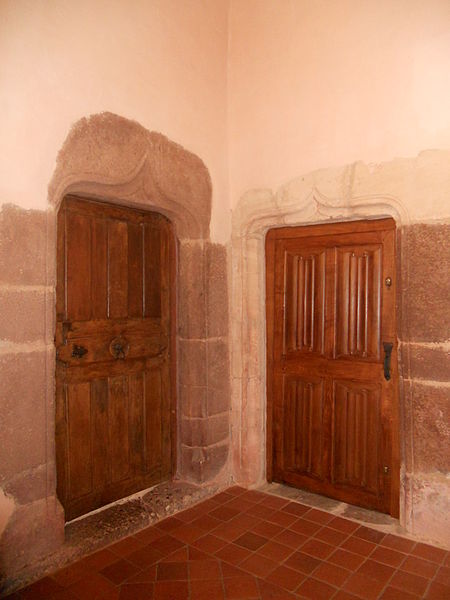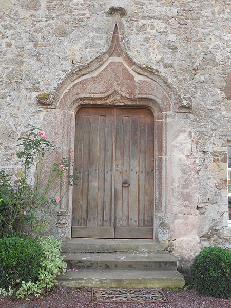 Architecturalement, l’ensemble a conservé un caractère authentique et offre un témoignage précieux sur l’organisation d’un logis seigneurial de la fin du Moyen Âge et du début de la Renaissance. Le corps de logis principal comporte une vaste salle centrale et constitue l’un des rares exemples du département à posséder une salle basse double en élévation (4,95 m) pratiquement intacte. On y accède depuis l’extérieur par une grande porte surmontée d’un linteau à double accolade ; la salle est dominée par une cheminée monumentale en pierre rouge locale, sur le pignon est, et flanquée d’un escalier tournant conduisant à une chambre d’entresol munie d’un judas et qui surplombe un cellier semi-enterré, disposition typique du « chamber-block ». Dans l’angle sud-ouest, une porte à linteau en accolade ouvre sur l’ancienne cuisine, et une ouverture cintrée à double colonnette donne accès à la chambre située au-dessus de cette cuisine. Un grand escalier en vis logé dans une tour polygonale, adossée à la façade postérieure, dessert une chambre à l’ouest pourvue d’une grande cheminée, puis la salle haute qui surplombe la grande salle et qui possède une rare cheminée monumentale gothique sculptée en calcaire ; à l’est se trouve une chambre reliée aux latrines. Une seconde vis, plus petite, assure une communication indépendante pour les parties ouest et conduit à une petite chambre sous combles. L’observation des modénatures — encadrements de portes et fenêtres et cheminées — permet de situer la construction dans sa forme actuelle près de 1500, même si certaines anomalies et éléments plus anciens, comme des cheminées en calcaire à consoles formées de triples quarts de rond et l’adjonction du grand escalier sur une structure préexistante, témoignent d’une phase de construction antérieure.