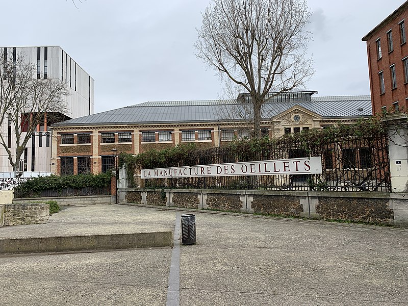 La Manufacture des œillets, située rue Raspail à Ivry-sur-Seine, est une ancienne usine de transformation métallurgique. Fondée au XIXe siècle par Guillaume Bac, l'entreprise produisait à l'origine des porte-plumes, des plumes et des encriers, puis s'est spécialisée dans les œillets métalliques et les fournitures de bureau. À la fin du XIXe siècle, les ateliers sont implantés à Ivry-sur-Seine et la grande halle est construite rue Raspail. La maison Bac se transforme en société anonyme à la fin du siècle et, après une fusion avec une entreprise de Boulogne-sur-Mer, la production des porte-plumes est transférée tandis que l'usine d'Ivry conserve la fabrication des œillets. Rachetée en 1900 par la firme américaine United Shoe Machinery, l'usine s'agrandit : en 1913 est édifié, d'après les plans de l'architecte Paul See, un bâtiment en verre et métal inspiré du modèle de la Daylight Factory, avec des niveaux libres et des façades largement vitrées pour mieux éclairer et aérer les ateliers. Dans les années 1920, la manufacture organisationnalise sa production sous le nom de Manufacture française d'œillets métalliques (MFOM) et poursuit les extensions des bâtiments, y compris une adjonction jusqu'à la rue Raspail. L'activité industrielle emploie plusieurs centaines de salariés à différentes périodes — on note notamment 245 ouvriers vers 1895, environ 300 en 1904 et près de 600 au milieu des années 1930 — et les installations couvrent alors une surface importante. La halle est partiellement endommagée lors des bombardements de la nuit du 26 au 27 août 1944. À partir des années 1980 le site se désindustrialise progressivement ; après l'arrêt de la production, certains locaux servent d'entrepôt, de lieux d'exposition ou de salles de spectacle, et quelques bâtiments sont transformés en lofts. Des acquisitions privées ont lieu à la fin des années 1980, puis la halle, le bâtiment « américain » et la maison de gardien sont inscrits à l'inventaire supplémentaire des monuments historiques en 1996. Depuis 2001, le rez-de-chaussée et le premier étage du bâtiment américain accueillent l'École professionnelle supérieure d'arts graphiques et d'architecture de la Ville de Paris (EPSAA). La Ville d'Ivry acquiert le site en 2009 dans l'objectif d'implanter un centre dramatique national, le Crédac s'installe au troisième étage à l'été 2011, et le Théâtre des Quartiers d'Ivry prend place dans la halle après les travaux en décembre 2016. Un fonds d'archives privées de l'usine est conservé à Ivry-sur-Seine (Val‑de‑Marne).