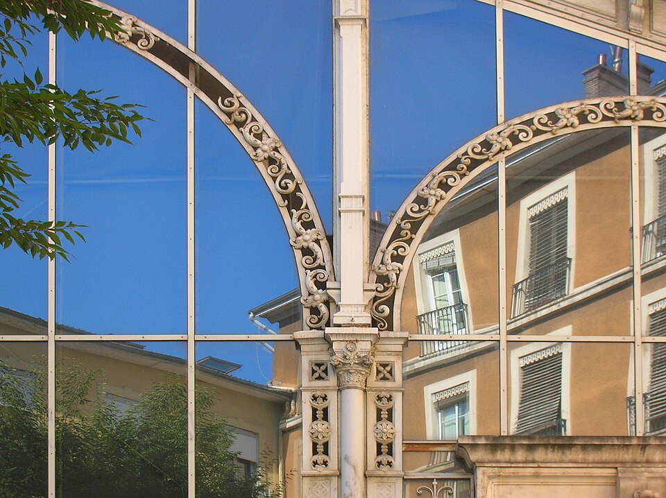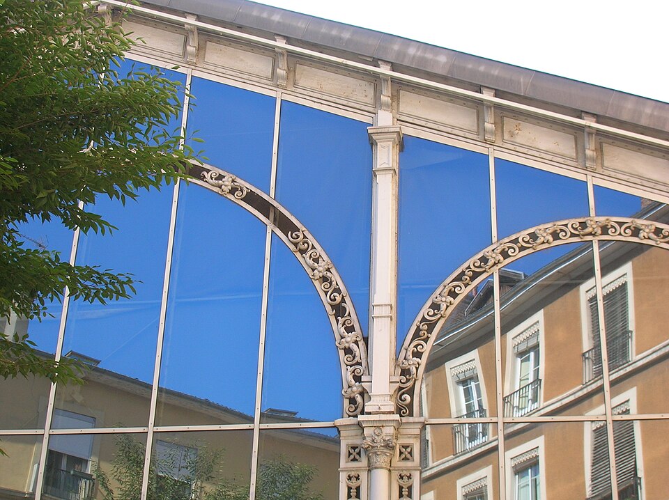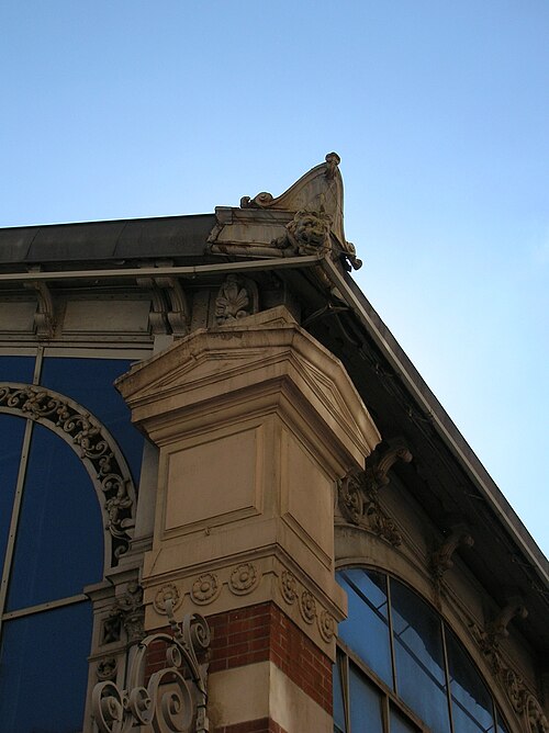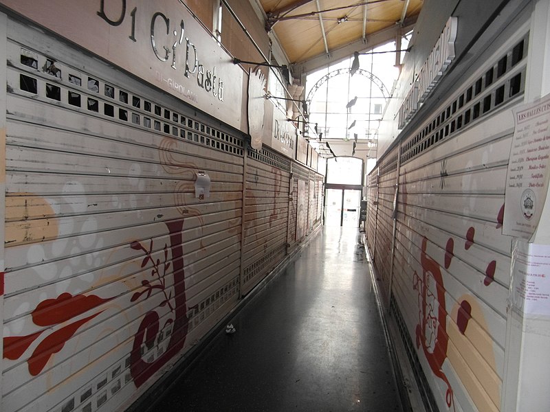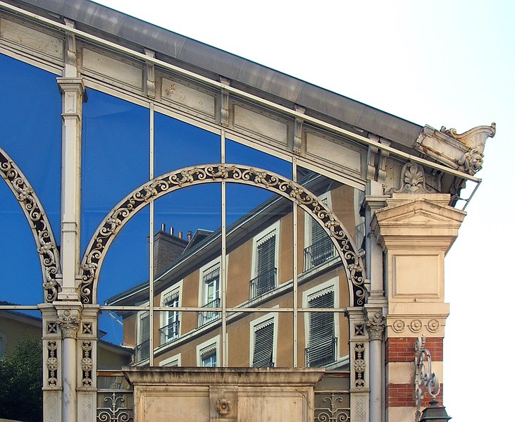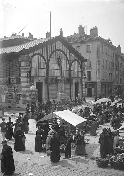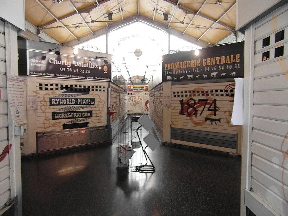 La halle Sainte-Claire est un marché couvert inscrit au titre des monuments historiques et situé place Sainte-Claire, dans le centre ancien de Grenoble (Isère, Auvergne‑Rhône‑Alpes). Datant de la fin du XIXe siècle, l'édifice a été conçu par l'architecte Hector Riondel et inscrit aux monuments historiques le 23 mai 2007. Le choix d'implanter un marché sur cette place remonte à l'acquisition du terrain de l'ancien couvent Sainte‑Claire en 1820 ; un marché est créé en 1825, complété par une modeste halle et une fontaine en 1830. Face au succès populaire, la construction d'une halle plus importante est décidée en 1867 et se concrétise par l'édification d'un nouveau bâtiment en 1874. La structure s'inspire des halles Baltard et combine des matériaux modernes pour l'époque : brique, verre et acier, la toiture reposant sur des piliers de fonte tandis que les murs de brique sont non porteurs. Les façades sont percées d'arcades en fer et ornées de frises ajourées en fonte ; elles présentent également des mascarons et des acrotères d'angle en forme de têtes de lion, réalisés par le sculpteur Clauses. Le toit est coiffé d'un lanternon aux quatre faces pourvues de persiennes en bois. Une fontaine décorait la façade principale ; elle a été conçue en pierre de Villebois par Clauses et représente un poisson entouré de rayons, surmonté de trois roses symbolisant les pouvoirs de la ville au Moyen Âge, présents sur les armoiries de Grenoble. À l'intérieur, une grande nef accueillait près d'une centaine d'étals. Jusqu'en 1963, le marché de gros se tenait en vis‑à‑vis de la halle avant d'être déplacé pour cause de saturation, et la halle elle‑même a fait l'objet d'une rénovation au début des années 1990. Aujourd'hui, le site reste un marché municipal en activité et s'intègre au secteur commercial du centre piétonnier. Installée au bout de la rue Alphand, la halle se trouve à proximité de l'office de tourisme, de la cathédrale Notre‑Dame et du vestige des remparts romains ; elle est accessible à pied dans la zone piétonne et desservie par les lignes B et D du tramway, dont la station porte le nom Sainte‑Claire‑les halles, au pluriel, bien que le lieu soit un bâtiment unique.