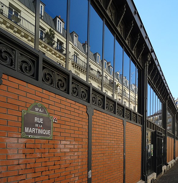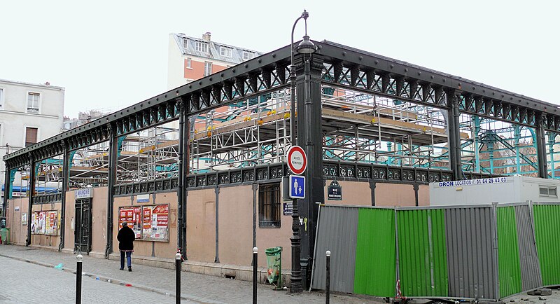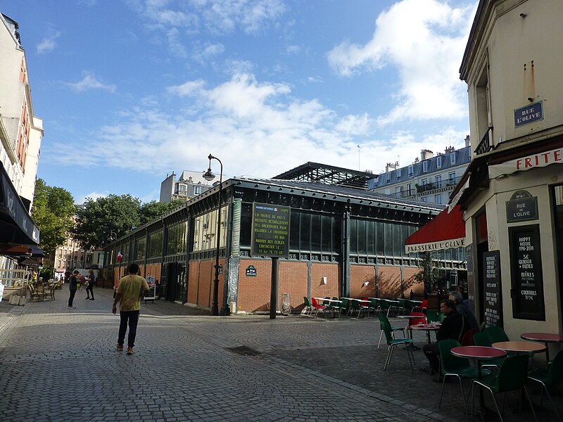 Orientée nord-sud, la halle ouvre sur la rue de Torcy au nord, la rue de la Martinique à l'est, la rue de la Guadeloupe au sud et la rue de l'Olive à l'ouest, avec des accès sur chacune de ces rues. Vingt commerçants y sont installés : on y trouve un traiteur africain, une épicerie traditionnelle, un fleuriste, deux bouchers, deux charcutiers, un volailler, un fromager, un traiteur marocain, un traiteur italien, un épicier de produits portugais, quatre primeurs, une épicerie biologique, un salon de thé et deux poissonniers. La qualité de l'offre s'inscrit dans la politique municipale des marchés alimentaires parisiens, visant un service de proximité et la convivialité du quartier.