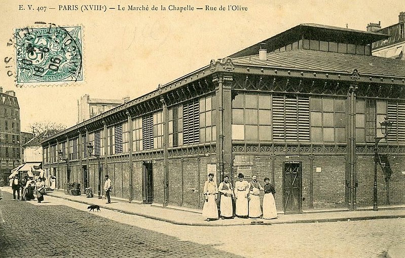 Quelques années avant la Révolution, un certain Chéradame obtint le transfert à La Chapelle du marché aux vaches laitières qui se tenait dans la plaine des Sablons ; ce marché, surnommé « marché aux vaches grasses de la Chapelle », figura en 1811 parmi les quatre marchés autorisés à Paris. Une ordonnance de police de 1821 autorisa la tenue d'un marché aux vaches laitières et aux vaches grasses le mardi dans la maison Jamet rue du Bon-Puits n°11, ainsi que d'un marché aux porcs vivants le jeudi sur la grande place de la commune. En 1837, le lieu était couramment appelé « marché de la Chapelle Saint-Denis » et destiné spécifiquement aux vaches, veaux et taureaux réformés ; un marché à la paille et aux fourrages se tenait sur la route de la Chapelle lorsque le marché était fermé.