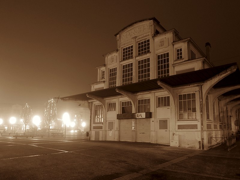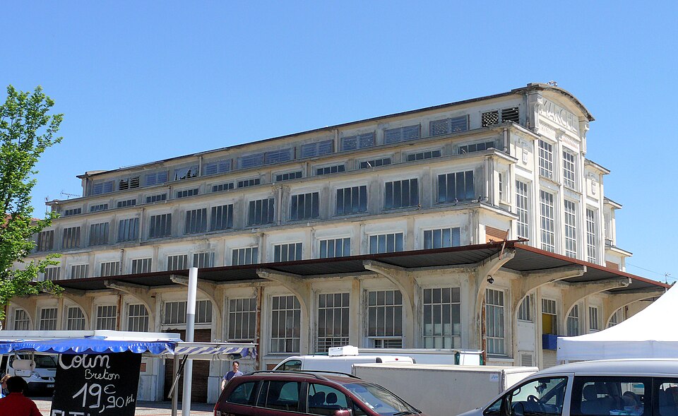 Construit en 1935 par Marcel Renard, l'ancien marché de Villebourbon fait partie d'une série d'équipements publics réalisés dans le cadre du plan d'urbanisme après les crues de 1930. Le bâtiment se présente comme une nef rectangulaire en béton d'une longueur de vingt-quatre mètres. Il se distingue des types courants de la région par sa structure à gradins vitrés et par une voûte en béton translucide reposant sur deux grands arcs de forme parabolique. À l'intérieur, rien ne subsiste des dispositions primitives qui comprenaient trente-six stalles séparées par des cloisons mobiles métalliques, réparties le long des murs de façade et en deux blocs centraux séparés par une allée transversale au milieu du bâtiment. Un carrelage en faïence blanche est le seul vestige de ces aménagements. Le volume intérieur a été modifié au début des années 1970 par la construction d'un "caisson" dans la partie sud, destiné à accueillir des bureaux et le hall des voyageurs de la gare routière. L'édifice échappe aux typologies régionales et s'inscrit dans le prolongement des recherches menées depuis le milieu du XIXe siècle sur l'architecture des halles, d'abord métalliques puis en béton.