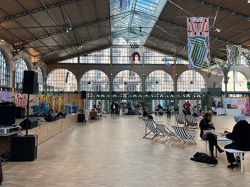 Le bâtiment comprend au rez‑de‑chaussée les Halles, un espace vitré de 2 300 m2 sous huit mètres de verrière, pouvant accueillir jusqu'à 3 000 personnes en concert debout, un auditorium de 250 places (dont dix places PMR), deux studios polyvalents de 335 m2 chacun au sous‑sol, un espace de 235 m2, une salle de réunion de 60 m2 et un bar‑restaurant à proximité de l'auditorium ; le sous‑sol est insonorisé et partiellement éclairé par la lumière zénithale des Halles. L'ensemble est entièrement accessible aux personnes à mobilité réduite.