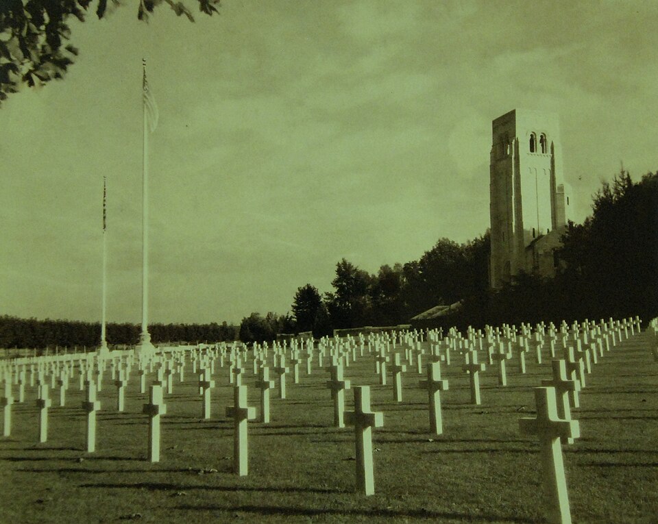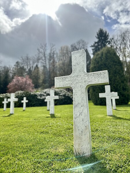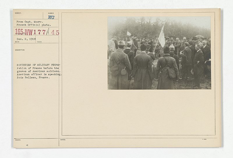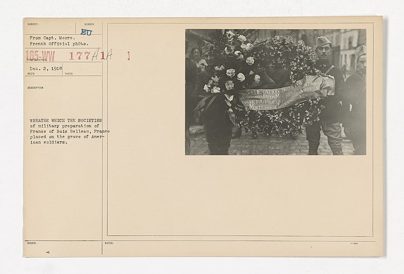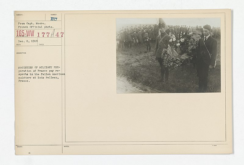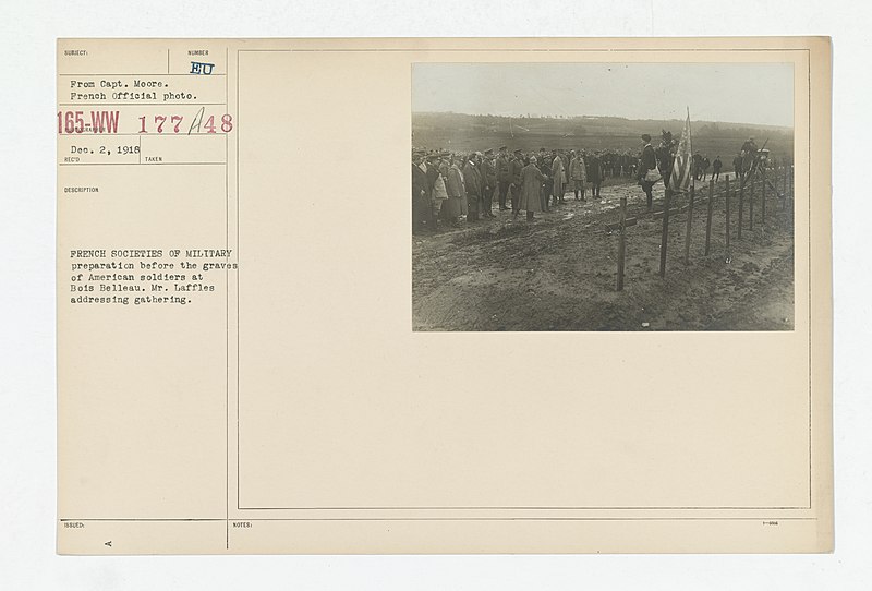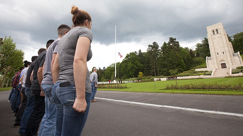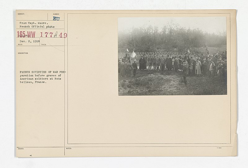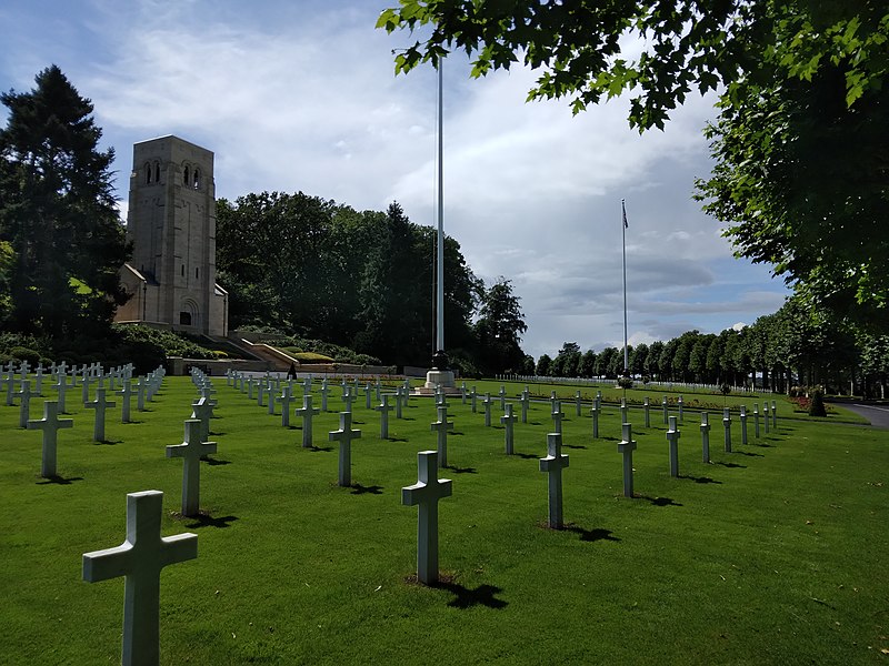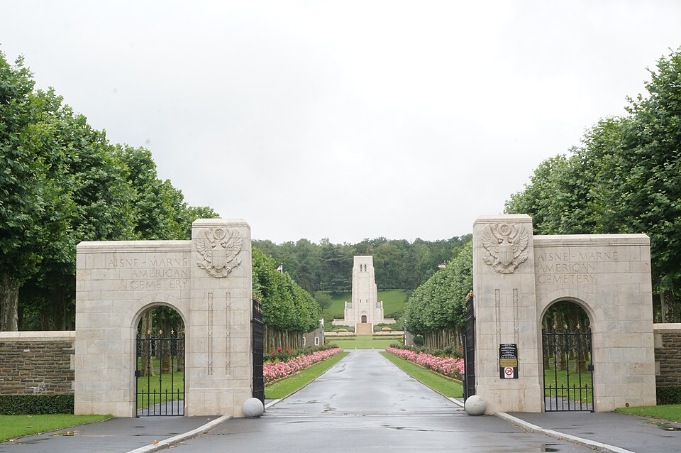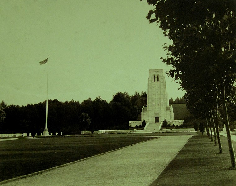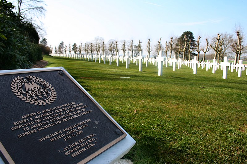 Le Mémorial Américain du Bois Belleau, situé à Belleau dans l'Aisne, est géré par l'American Battle Monuments Commission. Créé en 1918 comme cimetière temporaire, il fut maintenu sur place par décision du Congrès américain en 1921 et devint l'un des huit cimetières permanents américains de la Première Guerre mondiale hors des États-Unis. L'édifice principal, daté de 1930, est l'œuvre de l'architecte Ralph Adams Cram, assisté de Frank Ferguson. Le cimetière couvre 21,25 hectares au pied de la colline du bois Belleau, lieu où de nombreux inhumés périrent. Fondé par les services américains d'enregistrement des sépultures sous le nom de cimetière n°1764 - Belleau Wood, un accord avec le gouvernement français garantit l'usage perpétuel et exonéré d'impôts des terres occupées. La nécropole a une forme générale en T : la chapelle domine la barre transversale et les deux carrés de tombes se déploient en léger arc convexe de part et d'autre de l'allée centrale, tous deux encadrés par des mâts porte-drapeaux. Les carrés A et B, situés à l'extrémité sud du mail, comptent chacun treize rangées de tombes ; une étoile de David surmonte celles des soldats de confession israélite et une croix latine celles des autres. La nécropole rassemble 2 289 sépultures, dont 251 dépouilles non identifiées, et des hommes originaires des 48 États de l'époque et du district de Columbia. La grande allée, bordée de platanes et de rosiers polyantha, conduit du portail aux carrés des tombes ; au nord, des massifs de forsythias, lauriers, buis, cognassiers, deutzias, seringas et magnolias délimitent les carrés, tandis que des rosiers polyantha bordent le mail jusqu'à la chapelle. La chapelle-mémorial, élevée au‑dessus des tranchées creusées par la 2e division américaine pour défendre le bois Belleau après sa capture le 25 juin 1918, s'élève à plus de 24 mètres et illustre l'architecture romane française. Ses marches, ses murs et sa terrasse sont en pierres de Saint‑Maximin, Savonnières et Massangis. Les sculptures encadrant l'entrée figurent des scènes de tranchées ; le tympan représente un croisé en armure flanqué des écussons entrelacés des États‑Unis et de la France ornés de branches de chêne. Les insignes des divisions américaines ayant combattu dans la région et l'emblème américain sont gravés dans des écussons au sommet de la tour. Onze motifs sculptés sur les chapiteaux symbolisent les différentes armes et services : baïonnettes pour l'infanterie, canon pour l'artillerie, chars pour l'armée blindée, mitrailleuses lourdes croisées pour les unités de mitrailleuses, hélices pour l'aviation, caissons de munitions pour l'intendance, planche à dessin pour le génie, croix grecque et caducée pour les unités sanitaires, moteur d'avion pour les mécaniciens, une tête de mule marquée « 8 Chev » pour les wagons de transport, et feuilles de chêne pour le service juridique. Des flèches d'orientation gravées sur les rebords des fenêtres indiquent les distances de points d'intérêt historique. Sous les ouvertures de la tour figurent des sculptures de têtes représentant des hommes et des femmes ayant servi dans les forces alliées : un soldat français, une infirmière française, un aviateur américain, un soldat écossais, un soldat russe, un soldat portugais, un aviateur canadien et une conductrice britannique ; ces visages se répètent de chaque côté de la chapelle dans un ordre différent. Des détériorations datant de la Seconde Guerre mondiale ont été réparées. À l'intérieur, au‑dessus de l'entrée, le mur porte l'inscription rappelant que les noms gravés sont ceux des soldats américains qui combattirent dans la région et reposent dans des tombes inconnues ; les murs portent les noms des 1 060 disparus. La chapelle comporte cinq vitraux et un autel de marbre italien sculpté et doré ; la partie supérieure de l'autel présente un hibou, symbole du courage, et une balance, symbole de la justice, tandis que les six vertus — sagesse, courage, justice, foi, espérance et charité — figurent sur deux rangées. Le décor de la chapelle fut conçu par la société américaine William F. Ross et Cie et exécuté par Alfred‑Alphonse Bottiau. En 1934, la gestion du cimetière fut confiée à l'American Battle Monuments Commission ; il fut inauguré le 30 mai 1937, jour du Memorial Day. Le site a fait l'objet d'événements médiatiques : une visite prévue du président Donald Trump le 10 novembre 2018 fut annulée pour des raisons météorologiques, tandis que le chef d'état‑major de la Maison Blanche John F. Kelly et le chef d'état‑major des armées Joseph Dunford s'y rendirent. Le 3 septembre 2020, un article du journal The Atlantic a rapporté des propos prêtés à Donald Trump à propos des soldats enterrés au cimetière ; ces accusations ont été niées par Donald Trump et d'autres responsables. Le président Joe Biden s’est rendu au cimetière de Bois Belleau le 9 juin 2024.