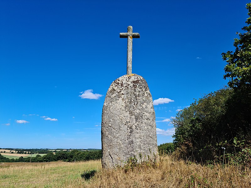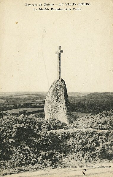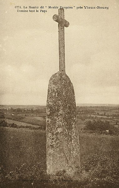 La Croix de Pasquiou est un menhir christianisé situé à Vieux-Bourg, dans les Côtes-d'Armor. Il est classé au titre des monuments historiques depuis 1964. Le monolithe, en granite local, mesure 3,85 m de hauteur, 2,40 m de largeur et 1 m d'épaisseur ; il présente une forme dite de « pain de sucre ». Il se trouve à environ 130 m à l'est du menhir de Crec'h Ogel et a été christianisé par l'ajout d'une croix sommitale. Des illustrations sont disponibles sur Wikimedia Commons ; la notice s'appuie notamment sur l'ouvrage de Loïc Langouët, Les mégalithes de l'arrondissement de Saint-Brieuc.