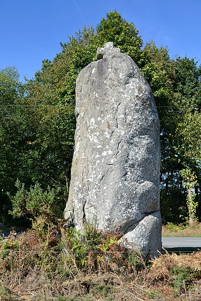 Le menhir de Landes-Ros, dit aussi la Pierre Longue ou menhir de Landerosse, se situe à Noyal-sous-Bazouges (Ille-et-Vilaine), à la limite avec Bazouges-la-Pérouse. Sa présence atteste d'une occupation humaine très ancienne, antérieure aux Celtes. Les menhirs appartiennent à l'époque néolithique (6000 à 2500 avant J.-C.) et servent tantôt de lieux de culte, tantôt de repères marquant un territoire. Le monument a été christianisé par l'ajout d'une croix en granite au sommet ; cette christianisation pourrait remonter à l'époque mérovingienne (Ve au VIIIe siècle), quand l'Église réaffectait ou surmontait les lieux païens immuables. Classé au titre des monuments historiques en 1889, il présente une forme pyramidale à quatre faces d'inégales largeurs — 1,60 m, 0,80 m, 1,80 m et 1,70 m à la base — et mesure 5,10 m de hauteur ; il est légèrement incliné vers le sud. Plusieurs traditions populaires entourent la pierre : l'une raconte que le diable, portant deux pierres, perdit la première ici et la seconde ailleurs ; selon certaines versions la seconde se trouve à Dol (menhir de Champ-Dolent), selon d'autres elle est visible à la Butte en Cuguen et serait enfoncée de dix mètres. On ajoute parfois qu'un trésor serait enfoui au pied des pierres, mais que quiconque creuserait risquerait d'être écrasé par leur poids. D'autres récits affirment que le menhir fut dressé à l'issue d'une bataille. Ces légendes participent à l'histoire locale de ce témoin du patrimoine mégalithique.