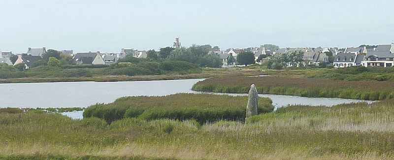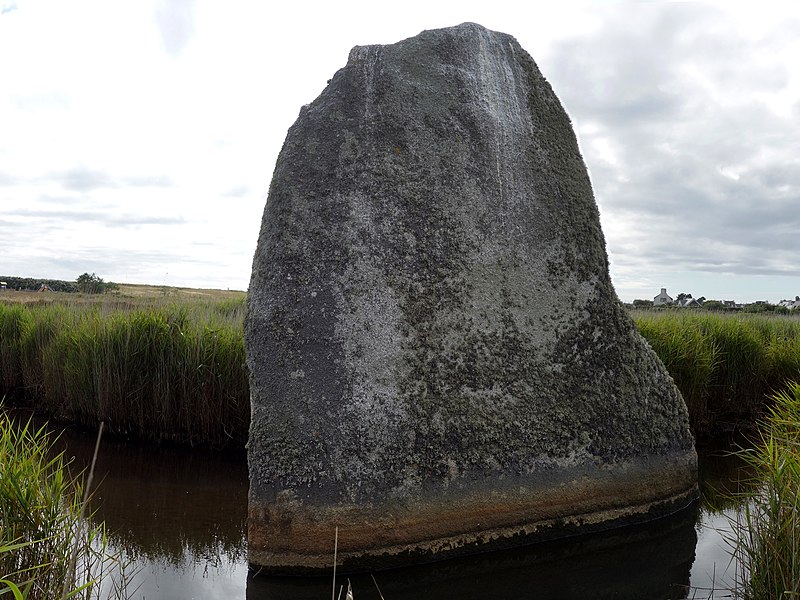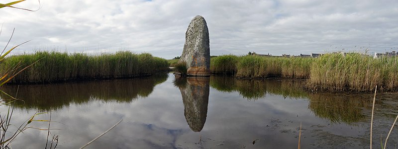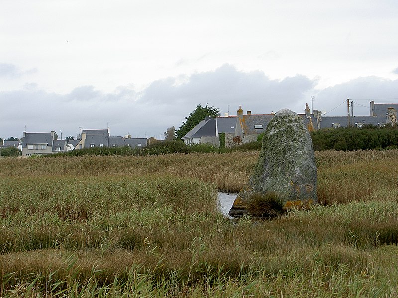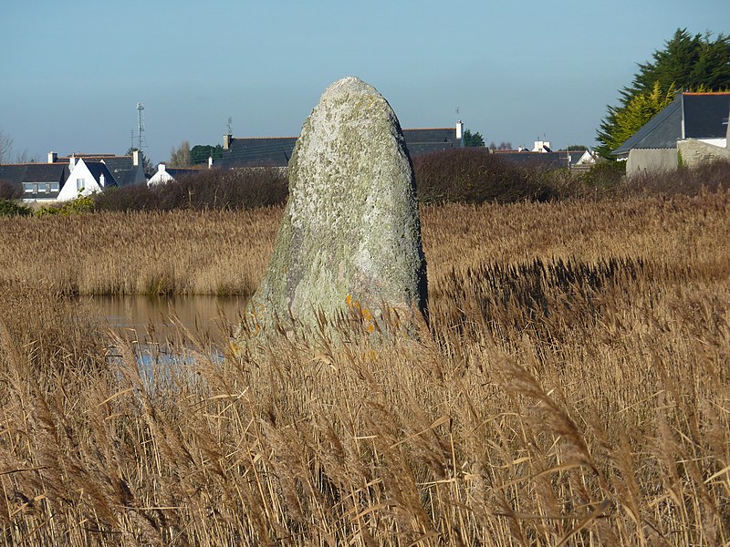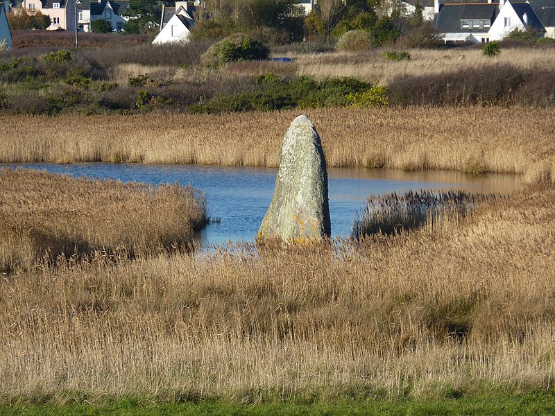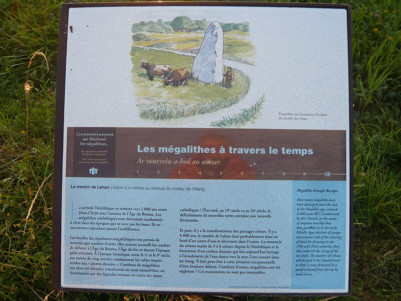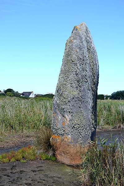 Le menhir de Lehan se trouve sur la commune de Treffiagat, dans le Finistère. Il est classé au titre des monuments historiques par arrêté du 6 mars 1923. Taillé dans un bloc de granite, il mesure environ 5 mètres de hauteur et présente une silhouette qui évoque un écusson : la face orientale est plane tandis que la face occidentale est concave. Installé aujourd’hui dans un marais, il témoigne d’une élévation du niveau de la mer depuis son érection au Néolithique. La formation d’un cordon dunaire a bloqué l’écoulement du petit ruisseau voisin vers la mer, entraînant la constitution du marais où se dresse désormais le menhir. Des documents iconographiques sont disponibles sur Wikimedia Commons et l’ouvrage d’Aubrey Burl, Guide des dolmens et menhirs bretons, le mentionne également.