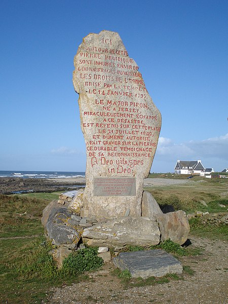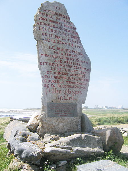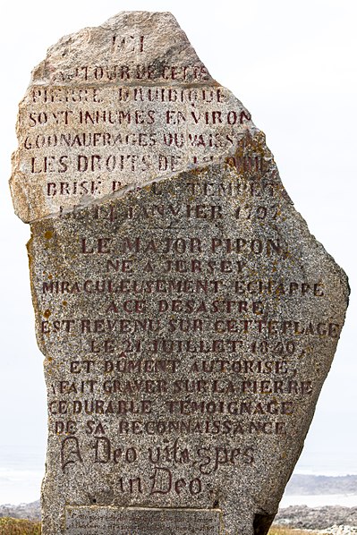 Le menhir dit des Droits-de-l'Homme se situe sur la commune de Plozévet, près de la plage de Canté, dans le Finistère. C'est un mégalithe haut de 5,5 mètres et large de 1,2 mètre, portant plusieurs inscriptions. Il est associé au naufrage du vaisseau Les Droits de l'Homme, engagé le 13 janvier 1797 dans un combat naval dans la baie d'Audierne entre les frégates anglaises HMS Indefatigable et HMS Amazon et le vaisseau français. La bataille se termine par l'échouage et la désagrégation du vaisseau sur un banc de sable au large de l'actuelle Plozévet, environ 600 personnes du côté français y trouvant la mort. En 1840, le major Elias Pipon, rescapé de la bataille, fit graver une inscription sur la pierre rappelant que "autour de cette pierre druidique sont inhumés environ 600 naufragés" et mentionnant son retour sur la plage le 21 juillet 1840; l'inscription comporte également la locution latine A DEO VITA SPES IN DEO. Une plaque en béton ajoutée en 1882 indique que la pierre a été sauvée de la destruction et classée parmi les monuments historiques, en citant Jules Grévy, Lagrange de Langres et Le Bail. Le menhir a été protégé par arrêté de classement au titre des monuments historiques le 25 novembre 1881. Il est aujourd'hui considéré comme un témoignage local de ce naufrage et du souvenir des victimes.
