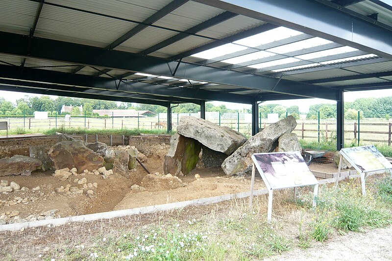 Le site mégalithique de Changé, dit site archéologique de Saint‑Piat, se situe à la limite des communes de Saint‑Piat et de Maintenon, dans le département d'Eure‑et‑Loir. Il réunit quatre monuments néolithiques alignés sur un même axe : trois dolmens — la Grenouille, le Petit et le Berceau — et le menhir appelé Le But de Gargantua. Le site est partiellement réutilisé par les Gaulois à l'Âge du bronze, puis par les Mérovingiens aux Ve–VIe siècles. Le dolmen du Berceau et le menhir Le But de Gargantua ont été classés monuments historiques en 1974. Il s'agit de la plus importante concentration de mégalithes du département. Les fouilles et sondages ont été menés par Léon Petit dans les années 1924–1927, par Michel Souty en 1975–1976, puis de façon systématique par l'équipe de Dominique Jagu à partir de 1983. Des prospections, photographies aériennes et études microtopographiques et électromagnétiques montrent qu'au moment de leur édification les monuments occupaient une presqu'île à la confluence de l'Eure et d'un de ses affluents, entre 3 500 et 4 500 av. J.-C. Les dalles employées pour les constructions proviennent du site et d'un banc de grès situé à 4 km. Les dolmens Petit et du Berceau, implantés côte à côte, couvrent chacun une surface d'environ 6 m2. Découvert en 1924 par Léon Petit, le dolmen Petit est de forme semi‑circulaire et était recouvert d'un cairn de gros blocs calcaires ; son entrée était obturée par un bouchon et le sol de la chambre pavé de plaquettes calcaires soigneusement ajustées. Le dolmen du Berceau est surmonté d'une dalle de couverture en grès monumentale, désormais brisée et pesant près de 30 tonnes ; son entrée orientée sud‑est est encadrée par deux orthostates et le sol intérieur est également dallé. Lors des fouilles de Petit, une douzaine de squelettes furent mis au jour dans le dolmen Petit, dont un individu portant un collier formé de 23 canines de renard perforées ; des ossements et des crânes de chiens furent également retrouvés. Deux datations par Tandétron situent l'utilisation du dolmen Petit entre 3 770 et 4 498 av. J.-C. Dans le dolmen du Berceau, les orthostates du fond portent des gravures par piquetage figurant des haches et des idoles, et l'absence de restes osseux laisse supposer un usage cérémoniel plutôt que funéraire. Après une première phase d'utilisation de 100 à 200 ans, le site connaît une transformation : le cairn du dolmen Petit est démonté et ses blocs redisposés en cercle à environ 2 m de la chambre, un fossé semi‑circulaire de 3 m de largeur et 0,60 m de profondeur est creusé autour des deux dolmens, et la table de couverture du dolmen Petit est dressée verticalement comme menhir à 6 m du fossé. Des charbons prélevés dans le fossé ont été datés par C14 entre 4 350 et 2 600 av. J.-C. Les orthostates furent raccourcis par débitage, l'un d'eux déplacé hors de la chambre qui disparaît alors sous un tumulus de sable et de gravier de rivière, tandis que le dolmen du Berceau reste intact. L'ensemble est entouré d'un cercle de pierres formé de gros moellons de silex, large d'environ 3 m et reposant sur le fossé comblé, et des calages de poteaux suggèrent l'existence possible d'une structure surmontant ce cercle. L'installation d'un atelier de taille de silex est attestée par la présence de milliers de fragments et des tessons de poteries du type chasséen. Dans une phase finale, un pilier du Berceau est retiré et la dalle de couverture brisée en deux, donnant au monument son aspect actuel et son nom ; la dalle issue du dolmen Petit, dressée antérieurement, est alors renversée et l'ensemble du site recouvert d'un tumulus d'environ 30 m de diamètre. Des photographies aériennes au nord du But de Gargantua ont mis en évidence de nombreux fossés et enclos interprétés comme vestiges de parcellaire et de fanums gaulois. Près de l'entrée du dolmen du Berceau, une fosse contenant des tessons de céramique de La Tène D, des ossements d'animaux (porcs, moutons, chèvres, bovins, chevaux) et des pièces monétaires a permis de dater une occupation de la seconde moitié du Ier siècle av. J.-C. Aux Ve–VIe siècles, les Mérovingiens aménagèrent une vaste nécropole de près d'une centaine de tombes creusées dans le tumulus, généralement des fosses rectangulaires ou oblongues délimitées par des blocs, où les défunts étaient déposés en cercueil de bois parfois entouré d'un linceul, les bras le long du corps et la tête majoritairement orientée à l'ouest. L'étude anthropologique des sépultures mérovingiennes indique une légère prédominance de femmes et une très faible représentation des jeunes enfants. Au Moyen Âge, une exploitation de sables et de graviers s'installe à l'ouest du tumulus et sert également à réinhumer des squelettes datés du Haut‑Empire découverts lors des travaux. Le dolmen de la Grenouille figure parmi les monuments alignés mais n'est pas décrit plus en détail dans les sources présentées.