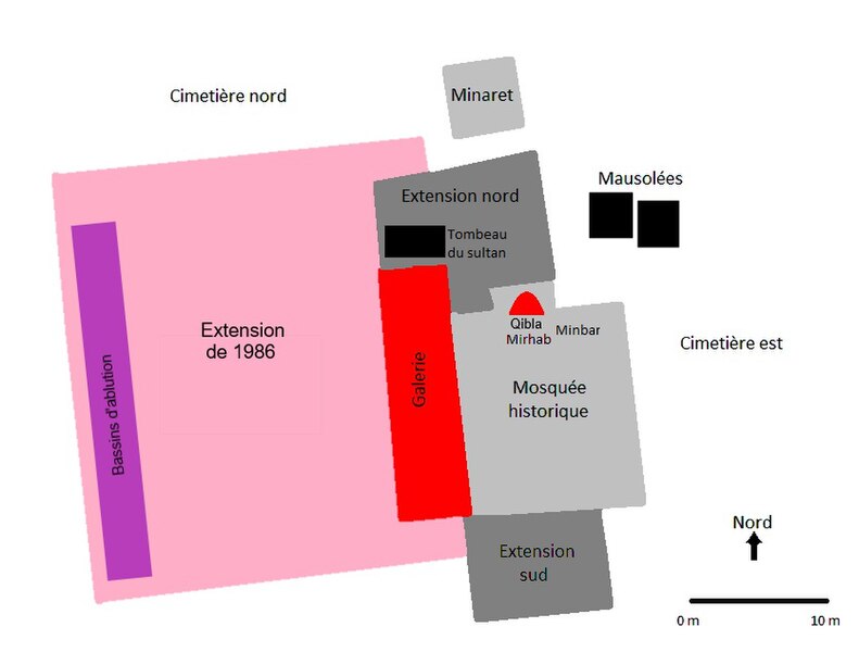 La mosquée de Tsingoni, située sur la Grande-Terre de Mayotte, est la plus ancienne mosquée en activité de France. Son implantation remonte au moins au XIVe siècle, l'INRAP ayant mis en évidence une occupation du site dès le XIIIe siècle. Un édifice cultuel est signalé dans les sources dès 1521 et le mihrab actuel a été érigé en 1538 par le sultan shirazien Ali ben Mohamed dit « Haïssa », époque où Tsingoni était capitale et la mosquée qualifiée de royale. Proche de la mer et protégée par un éperon rocheux, la ville possédait autrefois un port actif et un rempart en terre marquant l'emplacement de la vieille ville. La mosquée a échappé aux razzias qui détruisirent une grande partie de la ville entre 1790 et 1820, puis a fait l'objet de restaurations au milieu du XIXe siècle. L'édifice d'origine, construit en pierres de corail et chaux corallienne avec des poutres en palétuvier et un toit-terrasse typique de l'architecture swahilie, a été intégré dans des extensions successives depuis les années 1980. Plusieurs éléments anciens subsistent, en particulier le mihrab sculpté en blocs de corail, la porte nord et certains piliers, ainsi que des cimetières extérieurs comportant des mausolées shiraziens. Le mihrab, reconnu comme l'élément le plus remarquable, présente des décors géométriques sculptés, une baie surmontée d'arcs et une voûte coffrée ; des inscriptions découvertes en 2006 ont confirmé la datation de 1538 et le commanditaire sultanial. Le mimbar originel en bois aurait disparu lors des conflits avec les Malgaches, un exemplaire semblable étant conservé dans la mosquée de Domoni. Les extensions du XXe et du XXIe siècle, motivées par la fréquentation, ont inclus la construction d'un patio en 1986, d'un minaret livré en 1991 et d'une nouvelle salle de prière en 2003-2004 ; l'extension de 2004 a introduit, pour la première fois, un étage destiné aux femmes. Le minaret de 1991 a vu ses motifs sommitaux retirés en raison de leur poids excessif et a fait l'objet d'une inscription spécifique comme monument historique en 2017. La mosquée et les mausolées shirazi, ainsi que le sol du site, ont été inscrits aux monuments historiques en 2012 puis classés en 2015, à l'exclusion des extensions récentes en béton lors de la première inscription. À partir de 2014, un comité de pilotage local a été constitué et des études de restauration ont été lancées, avec un programme architectural et technique confié à un architecte en chef des Monuments historiques et un soutien du Loto du patrimoine en 2019. Des opérations archéologiques préventives ont prolongé les diagnostics de 2016, notamment par une fouille confiée à l'INRAP menée en 2023 afin d'éclairer l'évolution du bâtiment et d'effectuer une archéologie du bâti. Le parti de restauration privilégie la conservation maximale des matériaux d'origine et la restitution de dispositifs historiques disparus tout en respectant les différentes strates du monument. Dans ce cadre, des adjonctions en parpaing seront supprimées pour retrouver l'aspect ancien du mur de qibla et la loge du muezzin ; la baie nord obstruée sera rouverte pour rétablir la ventilation naturelle. Les enduits ciment appliqués entre 1980 et 2005 ont été éliminés et remplacés par des mortiers et enduits à base de chaux corallienne ou NHL 3,5, selon un protocole précis, afin de préserver les maçonneries en corail et en grès de plage. La restauration prévoit également la remise en état de la toiture, la mise hors d'eau de l'édifice et l'abaissement du sol intérieur pour restituer le niveau historique d'accès. Le projet, piloté par la mairie de Tsingoni, est financé en partie par la DAC Mayotte au titre du Plan de Relance et comprend l'aménagement des abords et la coordination des travaux sous maîtrise d'œuvre locale. La mosquée de Tsingoni reste un foyer religieux majeur et un symbole du patrimoine de Mayotte, figurant également sur des émissions philatéliques et numismatiques représentant le département.