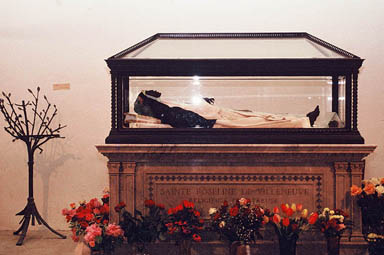 La chapelle Sainte-Roseline, édifice religieux construit au XIe siècle, se situe sur la commune des Arcs, dans le Var ; elle jouxte un cloître et formait, avec les bâtiments environnants, l'ancien monastère de la Celle-Roubaud. Classée monument historique en 1980, la chapelle abrite notamment la dépouille de sainte Roseline. Fille du seigneur des Arcs, Roseline de Villeneuve entra chez les Chartreux à 25 ans, devint prieure et mourut en 1329 à l'âge de 66 ans ; de nombreux miracles lui sont attribués. Sa dépouille est exposée dans une châsse en cristal, présentée allongée et vêtue de l'habit de cartusienne ; visage, mains et pieds semblent desséchés et noircis. Il s'agit cependant principalement d'un revêtement de cire vernie posé à la fin du XIXe siècle par un médecin italien sur les ossements, lequel a donné à la sainte un aspect momifié. Une radiographie révèle la présence d'une structure métallique destinée à maintenir le squelette. La châsse fait l'objet de pèlerinages, notamment pour la guérison d'enfants, qui ont lieu cinq fois par an. Un reliquaire du XIXe siècle, conservé dans une niche, renferme selon la tradition les yeux de la sainte ; l'un d'eux aurait été détérioré par le médecin personnel de Louis XIV venu les examiner. La chapelle est considérée comme l'abbatiale de l'ancien monastère de la Celle-Roubaud, nom lié à un ermite installé sur le site. Une donation datée de 1038 mentionne le couvent de Salam-Robaldo, devenu monastère de la Celle-Roubaud lorsque les Templiers investirent les lieux en 1200. Placée sous le patronage de sainte Catherine du mont Sinaï, la fondation fut cédée aux moniales bénédictines, puis occupée à partir de 1260 par l'ordre des Chartreux jusqu'en 1420. En 1504, les Franciscains de la stricte observance s'y installèrent et le monastère prit le nom de Sainte-Catherine d'Alexandrie ; le toponyme « chapelle Sainte-Roseline » n'apparaît qu'au XIXe siècle. À l'intérieur, un retable daté de 1541, attribué à l'école de Nice des frères Brea — probablement François Brea — présente une Nativité, et un maître-autel baroque entouré d'un retable sculpté encadre une Descente de Croix du début du XVIe siècle. Le bâtiment a été restauré en 1969 grâce au mécénat de Marguerite Maeght, qui permit d'enrichir la chapelle d'œuvres contemporaines. Parmi elles figurent une grande mosaïque murale réalisée en 1975 par Marc Chagall, Le repas des Anges, des vitraux de Jean Bazaine et de Raoul Ubac, ainsi qu'un bas-relief et un lutrin de Diego Giacometti. En 1984, Adrien Maeght a restauré le toit en tuiles romaines.