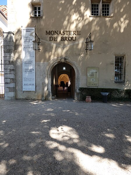 Le monastère royal de Brou, situé à Bourg-en-Bresse (Ain, Auvergne-Rhône-Alpes), est un ensemble religieux du début du XVIe siècle. Chef-d'œuvre du gothique flamboyant et du gothique brabançon, il comprend une église abbatiale, Saint-Nicolas-de-Tolentin, édifiée d'après les plans de Louis van Bodeghem entre 1513 et 1532, et trois cloîtres construits entre 1506 et 1512. L'ensemble fut entrepris par Marguerite d'Autriche en mémoire de son époux Philibert le Beau et pour accomplir le vœu de Marguerite de Bourbon ; elle fit appel à des artistes du Nord, supervisa les chantiers et envoya des modèles depuis Malines. Le site, occupé depuis l'Antiquité, livre des tombes antiques, paléochrétiennes et burgondes, dont des sarcophages exposés dans l'église. Confié aux chanoines augustins, le monastère possède trois cloîtres à étages dont l'aspect n'a guère changé ; la grille provenant du château de la Moussière sert aujourd'hui de portail au parc de la Visitation. Menacé pendant la Révolution, l'ensemble fut sauvé grâce à l'action de Thomas Riboud qui le fit déclarer « Monument national » et connut ensuite diverses affectations, notamment comme grand séminaire avant la confiscation de 1905. L'église est inscrite sur la liste des monuments historiques depuis 1862, les deux premiers cloîtres depuis 1889 et le troisième depuis le 16 janvier 1935. Les bâtiments monastiques appartiennent à la ville et abritent depuis 1922 le musée municipal de Bourg-en-Bresse, présentant au rez-de-chaussée des statues religieuses (XIIIe–XVIIe siècles) et à l'étage une collection de peintures du XVIe au XXe siècle, avec des œuvres de Bernard van Orley, Pieter Coecke van Aelst, Colijn de Coter, Gustave Doré, entre autres. Le monastère a été élu Monument préféré des Français lors des Journées européennes du patrimoine en 2014.