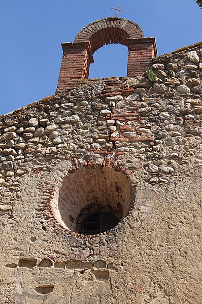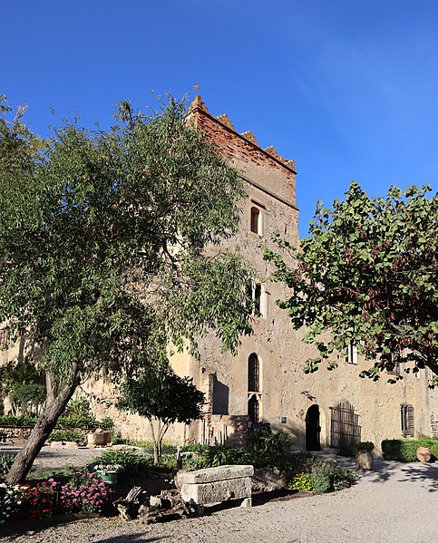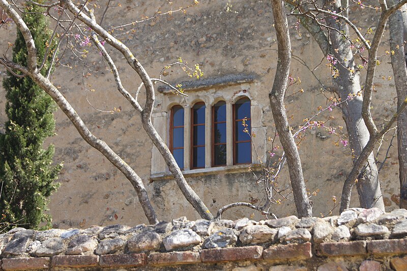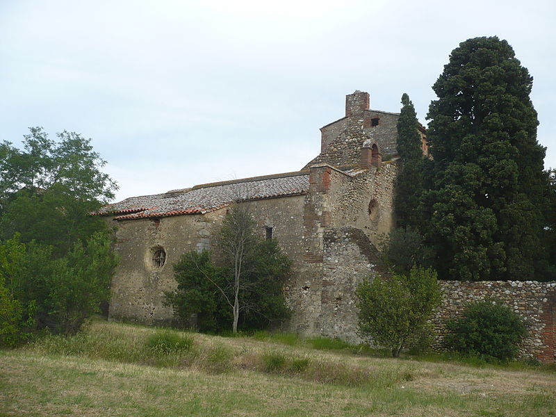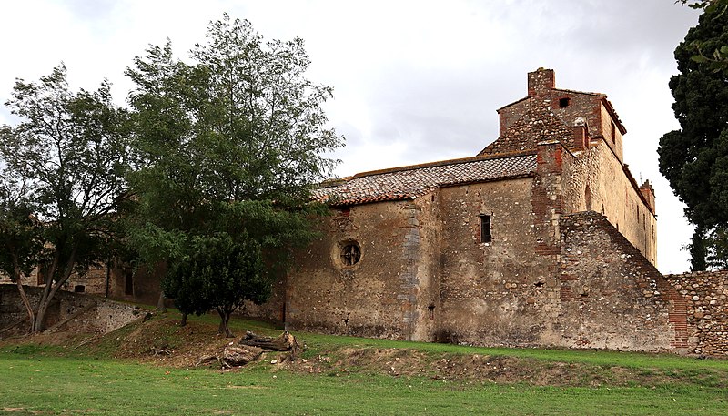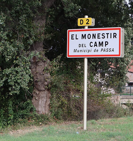 Le prieuré Saint-Estève, dit Monastir del Camp — « le monastère du Champ » en catalan — est un ancien monastère des Pyrénées-Orientales, considéré comme un des joyaux de l’art roman catalan. Selon la légende, il aurait été fondé à la fin du VIIIe ou au début du IXe siècle à la demande de Charlemagne après sa victoire sur les Sarrasins près de Passa, mais l’établissement est vraisemblablement postérieur de près de deux siècles à cet épisode. La tradition rapporte aussi le miracle du « Riu del Miracle », où un soldat aurait fait jaillir une source en plantant son épée dans le lit asséché d’une rivière, et la construction d’une chapelle en reconnaissance à la Vierge. Historiquement, une communauté de chanoines de saint Augustin fut installée sur le site aux environs de 1116 par Artal II, évêque d’Elne ; le prieuré devint par la suite un monastère bénédictin et resta en activité jusqu’en 1786. L’église actuelle a été édifiée sur l’emplacement d’une chapelle plus ancienne dédiée à sainte Marie, attestée en 1087 et 1090, ce qui situe sa construction entre 1090 et 1116. Elle présente une nef unique couverte d’un berceau en plein cintre, voûtée au siècle suivant, et une chapelle latérale voûtée sur croisées d’ogives ajoutée au mur nord au XIIIe siècle. Les bâtiments conventuels, datés des XIIe et XIIIe siècles, montrent notamment des fenêtres géminées dans l’aile ouest, et au centre s’ouvre un cloître gothique aux arcades trilobées construit en 1307. Le portail occidental, en marbre blanc de Céret et mis en place à la fin de l’époque romane (dernier tiers du XIIe siècle), comporte une double archivolte reposant sur quatre colonnes aux chapiteaux sculptés. Ces chapiteaux, taillés dans le marbre et attribués au Maître de Cabestany ou à des sculpteurs de son atelier, figurent des monstres humains ou animaux, des joueurs de trompe comparables à ceux de Rieux-Minervois, et un chapiteau singulier représentant un personnage présentant une croix à une femme richement parée, motif interprété tantôt comme l’Invention de la Croix par sainte Hélène, tantôt comme une Annonciation, cette seconde hypothèse étant cohérente avec la dédicace mariale du prieuré. Le bandeau extérieur de l’archivolte juxtapose des plaques de marbre aux motifs variés sans continuité décorative stricte. Une porte méridionale assure la communication entre l’église, le cloître et les bâtiments conventuels ; la chapelle latérale conserve deux plaques tombales dédiées à Sibille de Atciao et à Béatrice de Taltavull, filles de Guillaume de Sarragossa, Béatrice étant décédée en 1292. Le prieuré fut sécularisé par bulle pontificale de Clément VIII en 1592, puis vendu après le départ de la communauté à la famille Jaubert de Passa ; pendant la Révolution ses habitants se réfugièrent en Espagne et le monastère fut transformé en hôpital. Classé parmi les monuments historiques par la liste de 1875, le Monastir del Camp a, à la fin des années 2010, été acquis par un nouveau propriétaire qui a ouvert le site à des événements culturels et créé un musée du Christ. Inséré dans une grande bâtisse à l’allure de forteresse, le prieuré se signale par sa façade austère, sa tour d’angle crénelée et la présence de nombreuses épitaphes et inscriptions funéraires datant des XIIe au XIVe siècles, témoins de son importance architecturale et sculpturale.