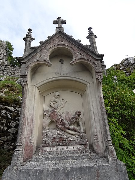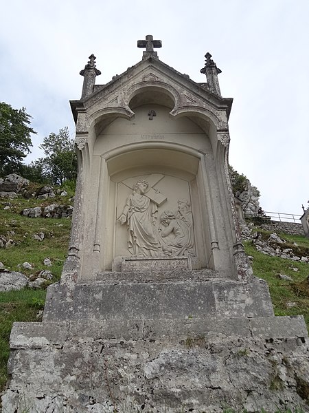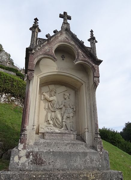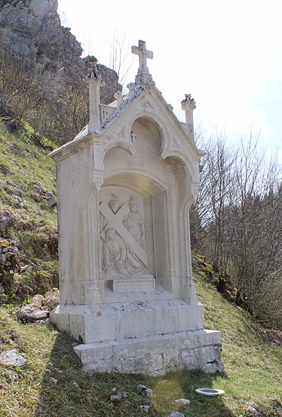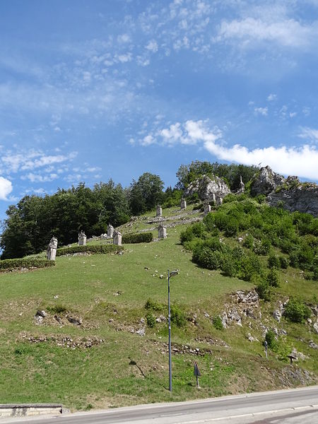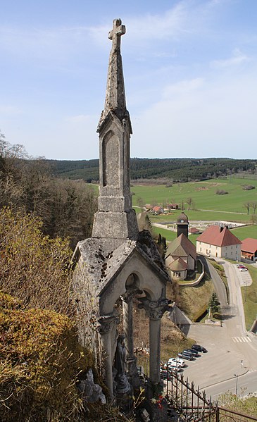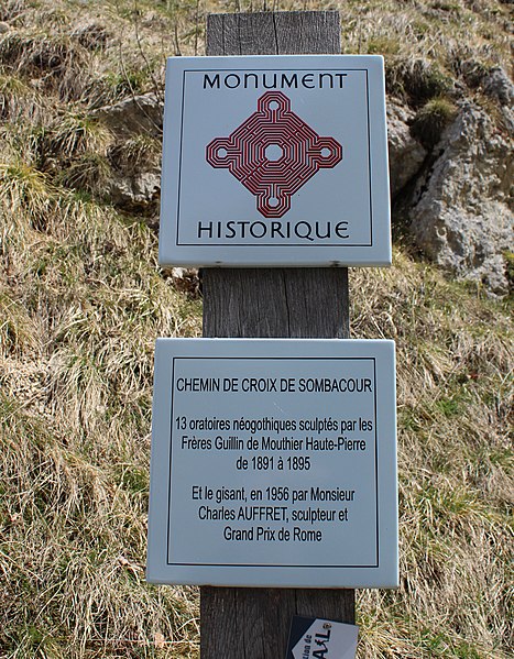 Le mont-calvaire de Sombacour, qui s'étend également sur le domaine communal de Bians-les-Usiers, se situe à l'entrée du village dans le Doubs. Érigé entre 1890 et 1895, il forme un parcours dévotionnel qui monte en serpentant depuis le village jusqu'au sommet de la colline. Le chemin de croix comprend quatorze stations ; l'ensemble comporte treize édicules abritant des hauts-reliefs en pierre, un oratoire de la Vierge, un chemin d'accès, une terrasse supérieure et une grande croix en bois. Ces éléments sont inscrits au titre des monuments historiques depuis le 23 août 1989. Le site est par ailleurs labellisé « Patrimoine du XXe siècle » par le ministère de la Culture. La chapelle dite XIII porte l'inscription de l'auteur Guillin de Mouthier-Haute-Pierre, datée de 1891 à 1895, et Jules Guillin est également l'auteur du monument aux morts situé à la base du parcours. Le Christ gisant placé à l'intérieur de l'oratoire est l'œuvre du sculpteur Charles Auffret, réalisée en 1956. L'emplacement, très scénographique, contribue à la valeur patrimoniale et paysagère du mont-calvaire.