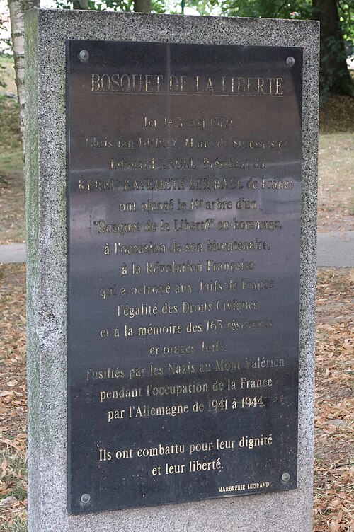 La forteresse du Mont-Valérien occupe le sommet du mont Valérien, colline culminant à 161 mètres à l'ouest de Paris, et s'étend principalement sur Suresnes, ainsi que sur Nanterre et Rueil-Malmaison ; elle est un fort pentagonal construit entre 1840 et 1846 et fait partie des seize forts édifiés autour de Paris. Le site a une longue histoire religieuse : des ermites s'y installent dès la fin du Moyen Âge, une première chapelle des prêtres du Calvaire est élevée en 1634, et le pèlerinage se développe aux XVIIIe et début XIXe siècles avec la construction de cellules érémitiques, de stations du calvaire, d'une nouvelle église et de l'escalier des cent marches vers 1780. À la fin du XVIIIe ou au début du XIXe siècle une princesse de Galea fait bâtir un petit château ; son héritier, Charles de Forbin-Janson, lui donne entre 1834 et 1841 un décor néo-gothique et des tourelles, tandis que sa mère fait édifier en 1828 une chapelle funéraire. Sous la Révolution les religieux quittent le mont ; en 1793 l'ingénieur Chappe installe une tour pour son télégraphe optique et, en 1812, Napoléon fait édifier un bâtiment destiné à un orphelinat de la Légion d'honneur qui, faute de projet abouti, devient caserne. Après la chute de l'Empire le bâtiment abrite les missionnaires de France dirigés par Charles de Forbin-Janson, qui entreprend la construction d'une église et crée un cimetière ouvert de 1823 à 1830 aux religieux et à des laïcs fortunés ; sur les pentes du mont apparaissent plusieurs moulins à vent au cours de la première moitié du XIXe siècle. Dans le cadre du programme de fortifications décidé dans les années 1840 la construction du fort, conduite d'abord par le colonel Vaneechout puis par le capitaine Humbert, entraîne la démolition des moulins, du calvaire et de l'église des missionnaires ainsi que le comblement de carrières et de fontaines. La forteresse, de forme pentagonale, comprend des fronts de 350 à 400 mètres, des pas de cavaliers reliant les bastions, un double mur de soutènement, des douves et un mur défensif. Au cours de la guerre franco-prussienne de 1870-1871 le fort se signale par la puissance de son artillerie — notamment la pièce surnommée « La Valérie » —, est occupé par les Allemands à la fin du conflit puis repris par les troupes versaillaises, qui l'utilisent pour bombarder les insurgés de la Commune. La forteresse abrite également une cartoucherie où des ouvrières travaillent au recyclage des munitions ; après deux incidents en 1870 et 1873, une explosion majeure le 18 décembre 1882 fait 25 blessés graves, dont 17 personnes qui décéderont, et une stèle rappelle ces victimes dans le cimetière ancien de Puteaux. À partir de 1884 le site accueille le dépôt central du matériel et l'École de la télégraphie militaire, structures qui évoluent ensuite en unités de transmissions et donnent naissance au 8e régiment de transmissions après diverses réorganisations. La forteresse a servi aussi de prison : en janvier 1898 le colonel Marie-Georges Picquart y est incarcéré dans le cadre de l'affaire Dreyfus, et le colonel Hubert Henry s'y suicide en août de la même année. Pendant la Première Guerre mondiale le Mont-Valérien est utilisé pour la défense aérienne de Paris, avec l'installation d'un projecteur pour repérer les avions la nuit. Lors de la Seconde Guerre mondiale la forteresse est le lieu où plus d'un millier d'otages, résistants et parachutés ont été fusillés par les autorités d'occupation ; ils étaient enfermés dans la chapelle désaffectée du château de Forbin-Janson avant d'être conduits dans une clairière en contrebas, et nombre de corps ont ensuite été dispersés dans les cimetières de la région parisienne. Le ministère des Armées indiquait, au 30 décembre 2008, 1 014 fusillés identifiés ; la grande majorité étaient des hommes d'au moins 16 ans, conformément aux règles militaires mentionnées par la Wehrmacht. Pour honorer la mémoire des combattants de la Seconde Guerre mondiale, le mémorial de la France combattante, œuvre de l'architecte Bruneau, a été inauguré le 18 juin 1960 par le général de Gaulle ; il se trouve à l'extérieur de la forteresse, adossé au mur d'enceinte au sud, et le site a été équipé d'un circuit mémoriel retraçant les derniers pas des condamnés, avec les graffitis laissés dans la chapelle et cinq poteaux d'exécution conservés. En 1962 fut inauguré le « parcours des fusillés » ; à la suite d'un concours en 2001, le projet du sculpteur Pascal Convert — une cloche en bronze portant, par ordre chronologique, les noms des personnes identifiées — a été réalisé, coulée en 2002 et inaugurée en 2003 pour rendre hommage aux 1 008 résistants et otages identifiés entre 1941 et 1944, avec une inscription rappelant « tous ceux qui n'ont pas été identifiés ». Le mémorial et la forteresse sont régulièrement le cadre de cérémonies nationales, dont la commémoration de l'appel du 18 juin, et ont accueilli des hommages officiels, notamment en 2008 et en 2024. Aujourd'hui le Mont-Valérien abrite des services militaires comme la Direction interarmées des réseaux d'infrastructures et des systèmes d'information d'Île-de-France/8e régiment de transmissions, le colombier militaire national et son musée, ainsi qu'un musée des transmissions installé dans le bâtiment dit « de 1812 » ; le site conserve aussi les ruines de l'ancien cimetière et des collections artistiques, parmi lesquelles figurent des sculptures déposées par le Centre national des arts plastiques.