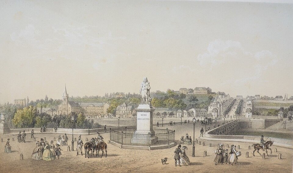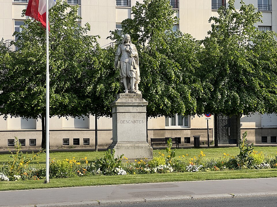 Le monument à Descartes (la statue et son piédestal) situé place Anatole France et tel que représenté sur le plan annexé à l’arrêté. Il figure au plan cadastral de la commune, section DY, sur un espace public non cadastré : inscription par arrêté du 17 avril 2025