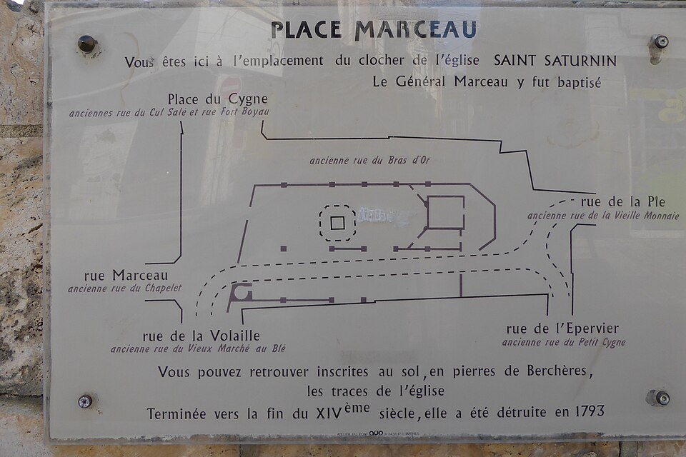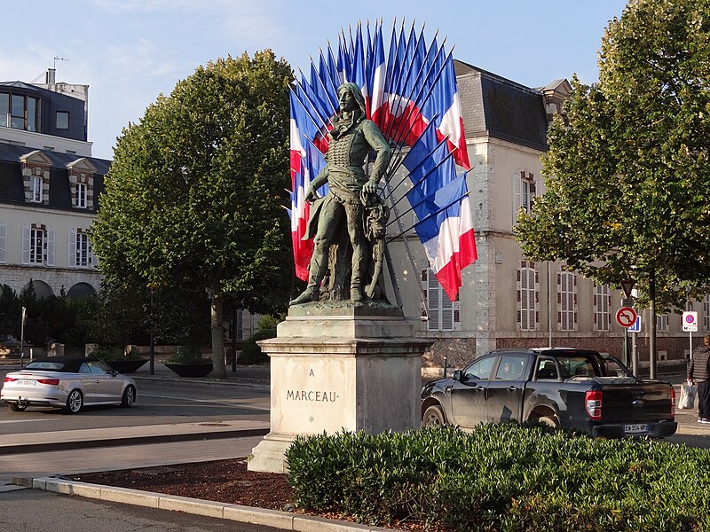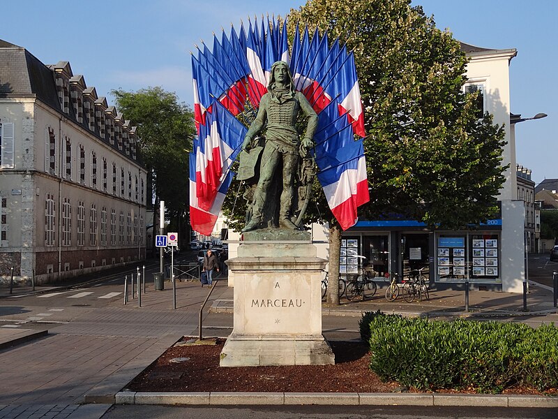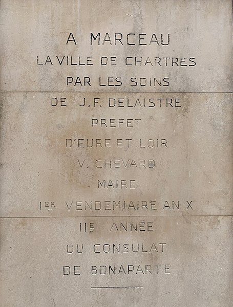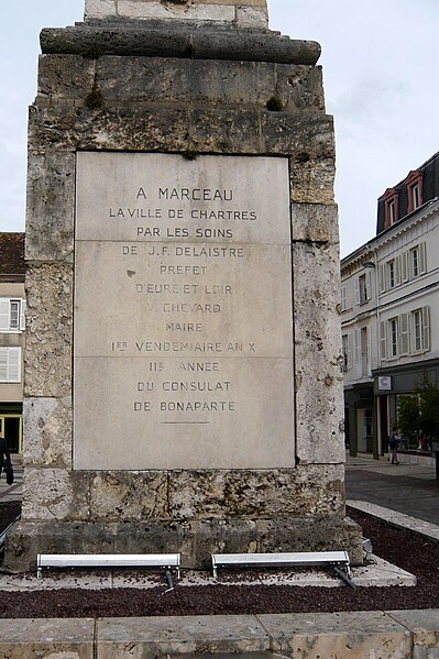 La colonne Marceau, dite Monument à Marceau, rend hommage au général François Séverin Marceau (1769-1796) et se situe place Marceau à Chartres, sa ville natale. Conçue par l'architecte Laurent Morin et l'ornemaniste Charpentier, elle a été réalisée entre 1800 et 1801 et inaugurée le 1er vendémiaire an X (23 septembre 1801). Édifiée sur l'emplacement de l'ancienne église Saint-Saturnin, détruite en 1793, elle a été construite avec les pierres de cette église, où Marceau avait été baptisé le 1er mars 1769. L'édifice, en forme d'obélisque coiffé d'une urne cinéraire, est décoré sur ses quatre faces de trophées sculptés par Charpentier représentant la guerre, le commerce, les arts et les sciences. Le piédestal comporte quatre cartouches qui relatent les dates du parcours militaire de Marceau ainsi que les circonstances de sa mort et de ses funérailles. Contrairement à de nombreux projets révolutionnaires restés sur le papier pour manque de moyens, cette colonne est le premier monument à la mémoire d'un grand homme érigé dans l'espace public et conservé dans la région Centre-Val de Loire. La place du Marché-Neuf et la rue du Chapelet qui la rejoignent furent rebaptisées au nom du général ; Marceau est né au numéro 20 de cette rue. En 1840, la municipalité envisagea de remplacer la colonne par un nouveau monument à Marceau, mais devant le mécontentement de la population la statue projetée fut finalement installée place des Épars en 1851. Lors d'une réfection de la place en 2015, la colonne fut retirée de son socle en pierre de Berchères, jugé surdimensionné, puis déplacée de huit mètres vers le sud pour libérer de l'espace pour des terrasses. La colonne et son piédestal ont été inscrits au titre des monuments historiques par arrêté du 23 mars 2017.