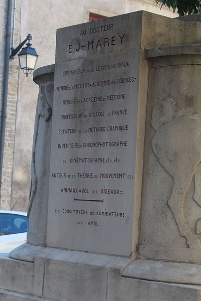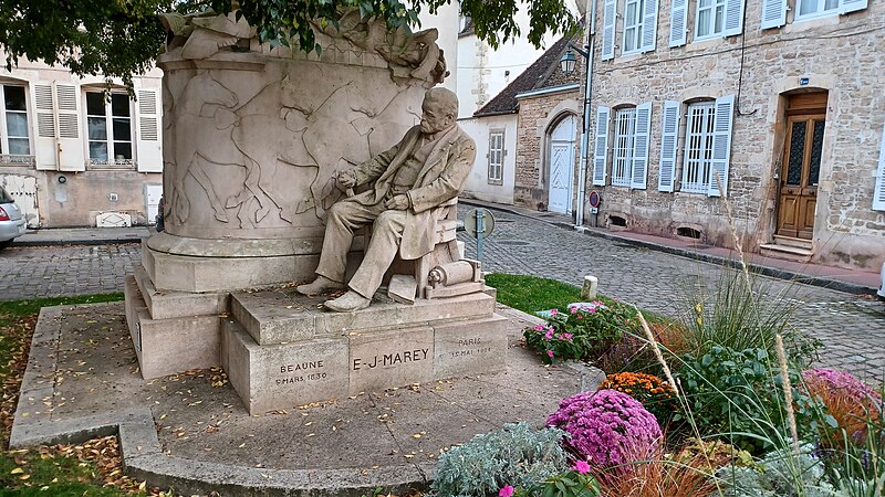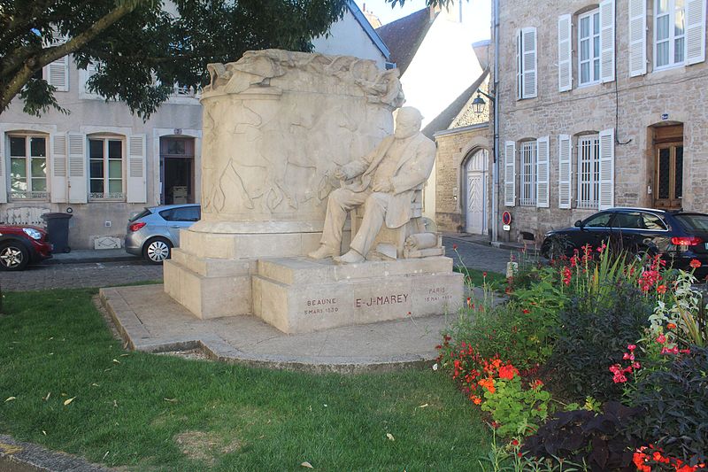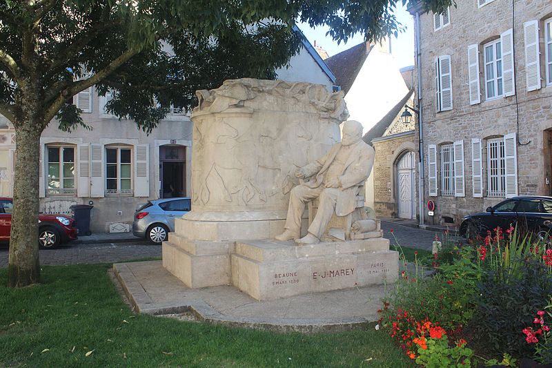 Le monument à Étienne-Jules Marey, élevé par souscription publique internationale, se dresse place Marey à Beaune (Côte-d'Or). Il honore Marey, né à Beaune en 1830 et décédé à Paris en 1904, inventeur de la chronophotographie et précurseur du cinéma, auteur d'études sur le mouvement, la physiologie et la circulation du sang ; en 1889 il réalise le premier film scientifique. L'initiative a été lancée par un comité créé en 1908 par Auguste Dubois, principal du collège Monge, la Ville ayant mis à disposition un terrain. Le comité confie en 1910 la réalisation du monument à l'architecte Régis Jardel et au sculpteur bourguignon Henri Bouchard, né en 1875 et lauréat du Prix de Rome. Achevé en 1911, le monument est inauguré le 31 août 1913 en présence du ministre des Finances Charles Dumont, du maire Jacques Vincent et du docteur Edmond Bouley, devant les caméras des actualités Gaumont. Construit en pierre de Pouillenay, il se compose de deux éléments distincts : une effigie assise de Marey et une borne architecturée dite « borne aux animaux », ornée d'une frise de chevaux en relief courant sur trois faces et couronnée d'un vol d'oiseaux. Marey est représenté assis, dans une attitude d'introspection et de concentration, entouré de ses outils scientifiques — chronomètre (aujourd'hui disparu), cylindre enregistreur — et de quelques livres évoquant ses publications. Le sculpteur évite la surélévation habituelle : le siège n'est guère plus haut que le niveau de la rue, expression d'une vision moderne de la sculpture adoptée au XXe siècle. Le contraste entre le naturalisme du personnage en ronde-bosse et le caractère décoratif du bas-relief des chevaux est frappant. Ce bas-relief illustre aussi la théorie de Bouchard sur l'adaptation de la sculpture à l'architecture, telle qu'il l'expose dans son carnet 37, où il considère la sculpture comme un enrichissement de l'architecture et un moyen de mettre en valeur l'échelle de la nature. L'ensemble révèle l'originalité de Bouchard : fidèle à un réalisme inspiré, il revoit cependant les codes de la statue monumentale en reconsidérant le statut du socle, le décor et le traitement du personnage glorifié. Le socle porte une inscription qui énumère ses titres, ses fonctions et ses inventions et le dédie « à ses concitoyens, ses admirateurs, ses amis ». Le monument a été inscrit au titre des monuments historiques le 7 juin 2019, puis classé par arrêté du 1er décembre 2022.