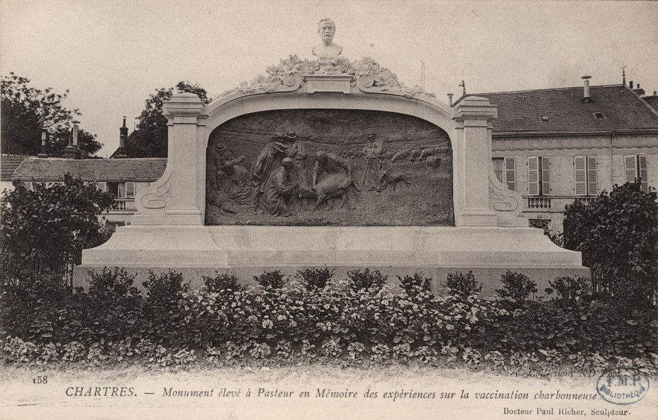 Le Monument à Pasteur de Chartres, œuvre de Paul Richer datée de 1903, se distingue par une conception qui célèbre les travaux de Pasteur et leurs retombées locales plutôt que de se limiter au portrait du savant. La qualité du haut-relief s'inscrit dans le corpus des monuments officiels réalisés par et autour de Jules Dalou pour les institutions parisiennes. Implanté rue Danièle-Casanova en face de la préfecture, il se compose d'un buste en marbre et d'un haut-relief en bronze.