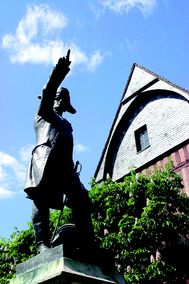 Le monument à Rochambeau situé place Saint-Martin, tel que représenté par un liseré rouge sur le plan joint à l'arrêté (domaine public non cadastré) : inscription par arrêté du 30 mars 2017