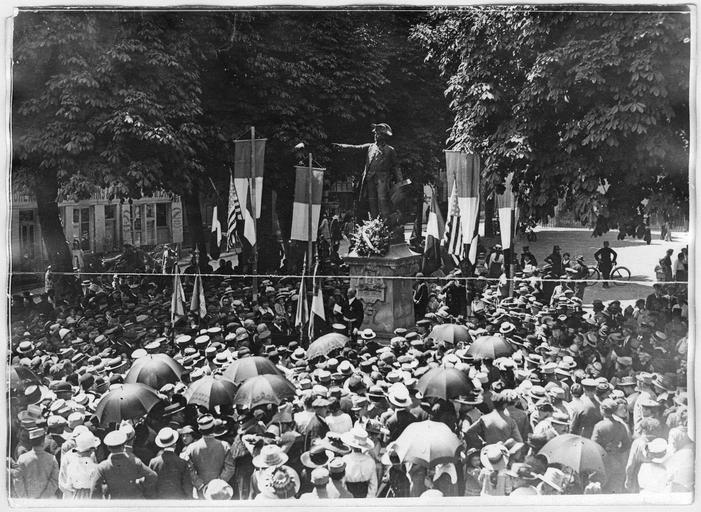 La statue en bronze, réalisée par Fernand Hamar, a été inaugurée en présence de l'ambassadeur américain Horace Porter. Elle constitue le modèle réduit du futur monument de Lafayette Square à Washington.