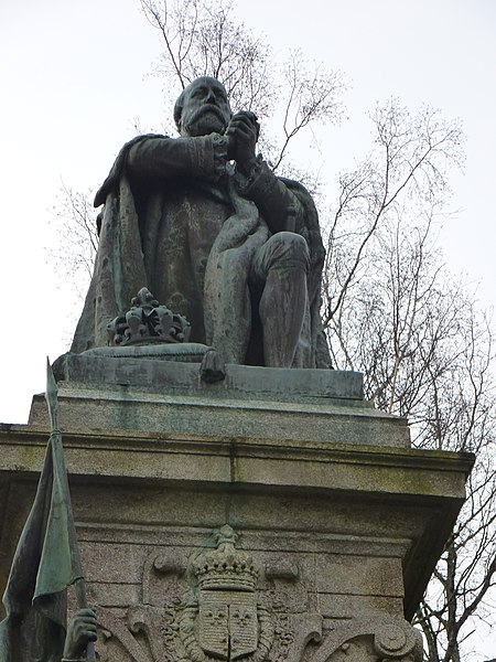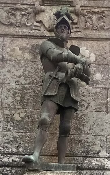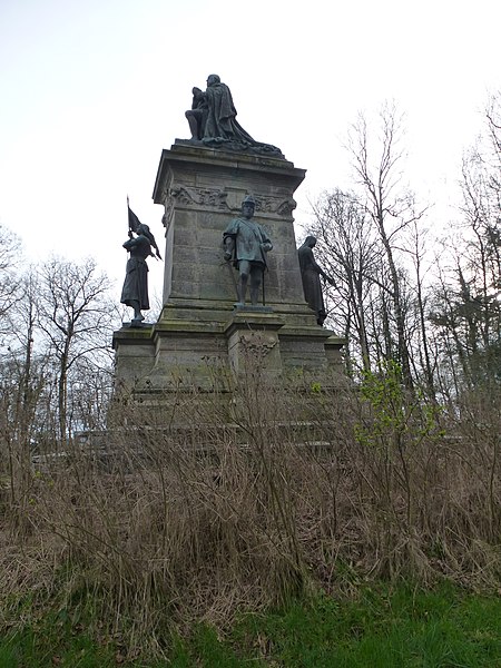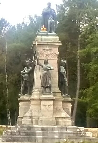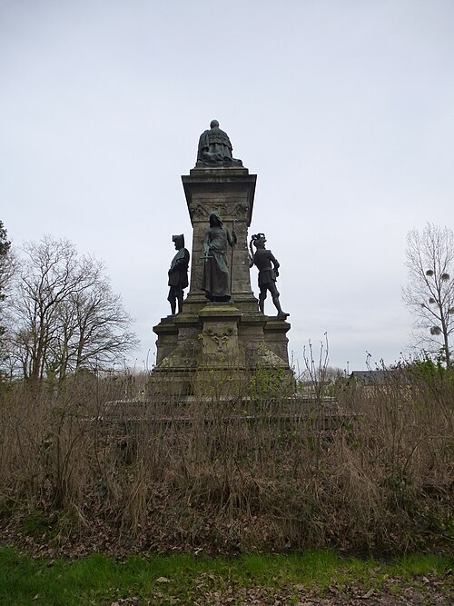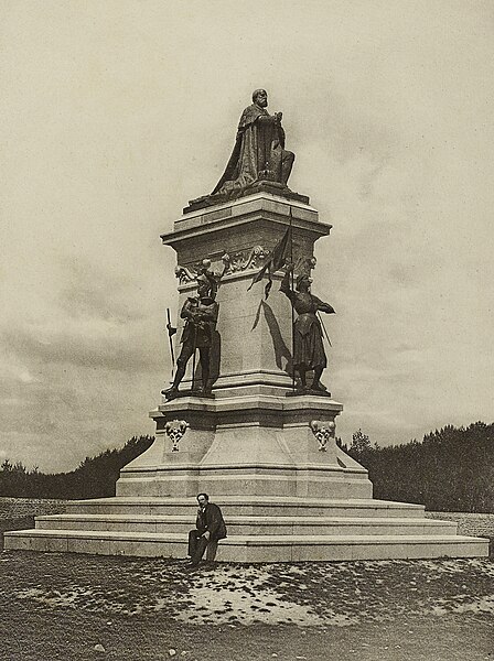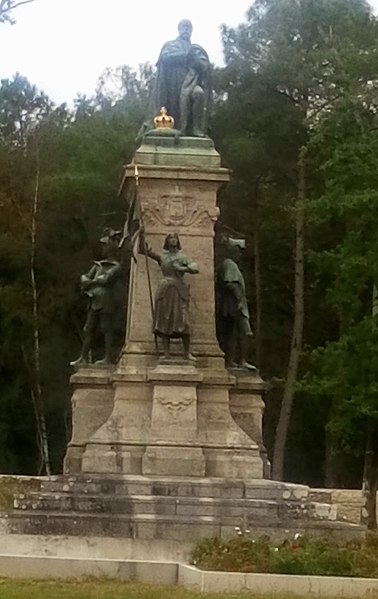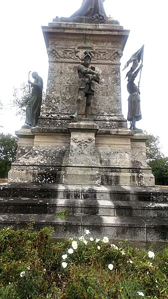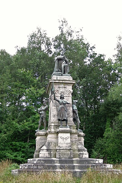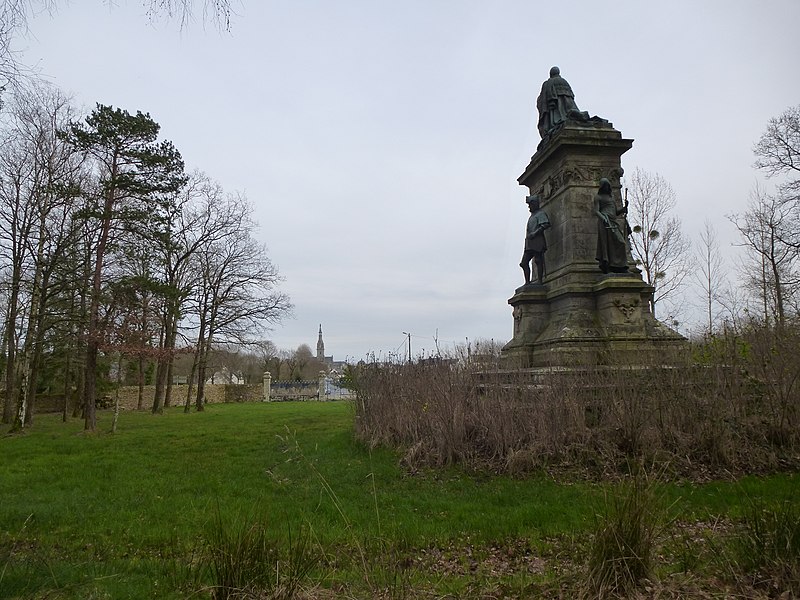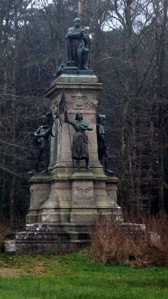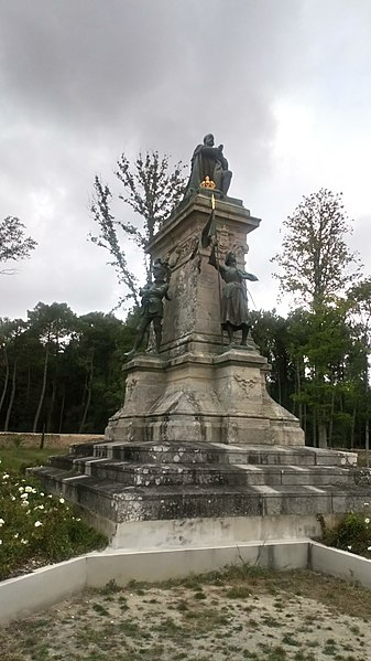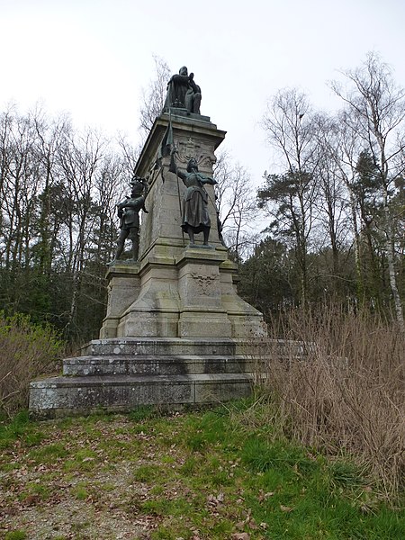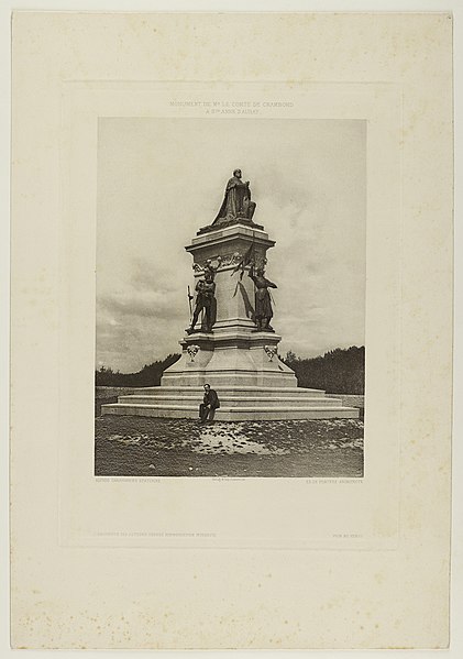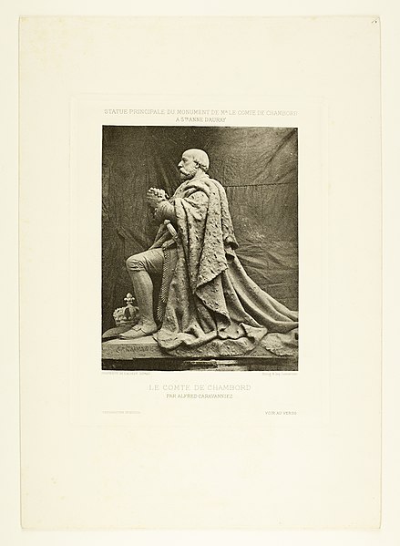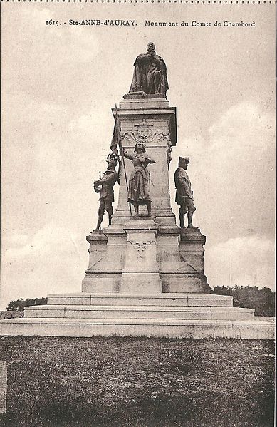 Le monument au comte de Chambord est une sculpture monumentale érigée à Sainte-Anne-d'Auray (Morbihan) et dédiée à Henri d'Artois ; il a été réalisé à partir de 1891. Il se situe en vis-à-vis de la basilique Sainte-Anne, à environ 700 mètres à l'ouest, dans une perspective remarquée mais peu soulignée. Le site avait été, au XIXe siècle, un lieu de pèlerinage royaliste, notamment lors de la tentative de restauration du prétendant Henri V, soutenu par une grande part du clergé et des élus du département, parmi lesquels figuraient des notables légitimistes. Les rassemblements se sont d'abord organisés autour de messes célébrées le jour de la fête de saint Michel, anniversaire du candidat, puis d'un pèlerinage populaire fixé au 29 septembre à partir de 1875, accompagné de réunions dans la remise de l'hôtel du Lion d'Or et de l'édification d'une grande baraque de planches. Après la mort du comte de Chambord en 1883, le pèlerinage déclina et la baraque fut démolie. Pour relancer la manifestation, une souscription permit d'acheter un terrain et d'ériger un monument ; la "société de Saint-Henri", créée le 20 février 1889 à l'initiative d'Athanase de Charette et d'amis châtelains, prit en charge le projet. Un premier projet confié à l'architecte Lequeux en 1888 fut écarté ; Édouard Deperthes, l'architecte de la basilique voisine, dessina la composition finalement retenue. Le monument fut exécuté par M. Kergoustin à partir de 1891 ; les cinq statues, sculptées par Alfred Caravanniez, furent fondues en fonte par Ferdinand Barbedienne pour la somme de 70 000 francs. Un mur et une grille furent installés en 1897, mais le jardin prévu ne put être réalisé alors par manque de financements. Le pèlerinage connut ensuite des variations liées au climat politique : les autorités réprimaient les manifestations antirépublicaines, poussant les monarchistes à contrecarrer les interdictions par des signes discrets et des chants présentés comme religieux, tandis que les offices étaient parfois autorisés à condition d'être apolitiques. Après la Première Guerre mondiale, le rassemblement déclina ; il fut relancé par l'Action française puis interdit en 1928. Pendant l'Occupation (juin 1940–septembre 1944), ni les autorités allemandes ni le régime de Vichy ne démontèrent le monument, qui ne subit pas non plus de dommages lors des bombardements ou des combats autour de la poche de Lorient. Des tentatives de relance ont eu lieu en 1950 puis en 1983, cette dernière à l'initiative de l'Union des cercles légitimistes de France ; parfois se forment de petits cortèges suivant les chapelles des différents prétendants. La basilique voisine conserve par ailleurs des vitraux où la famille royale figure près d'une chapelle consacrée à Napoléon III. Le monument a été restauré en 2012 : le mur de clôture a été en partie remonté et le jardin initialement prévu a enfin été réalisé. Le 31 mai 2015, le prince Louis de Bourbon, duc d'Anjou, et son épouse Marie-Marguerite se sont recueillis devant le monument lors d'une cérémonie. L'ensemble de la statuaire, les murs, la grille et le sol d'assiette du jardin a été inscrit au titre des monuments historiques par arrêté du 20 décembre 2019. Selon Le Télégramme, des membres de l'Alliance des cœurs unis se seraient prosternés devant le monument, allégation contestée par l'association dans un droit de réponse qui affirme qu'il s'agissait d'un autre groupe. Le monument présente une composition pyramidale de style pompier propre à la fin du XIXe siècle : un haut piédestal de granit clair, posé sur trois degrés, supporte la statue sommitale et les soubassements des statues flanquantes. La face est du piédestal porte les armoiries du royaume de France. Au sommet, la statue représente le comte de Chambord, désigné comme le roi Henri V, agenouillé, tête nue, vêtu des habits de sacre avec manteau fleurdelisé, portant les colliers de Saint-Michel et du Saint-Esprit, l'épée Joyeuse au côté et les mains jointes en prière ; la couronne est posée sur un coussin à sa droite. Aux angles du piédestal se dressent quatre statues en pied symbolisant la fidélité à la monarchie et ses vertus : Jeanne d'Arc à l'avant, sainte Geneviève à l'arrière, le chevalier Bayard à gauche et le connétable Du Guesclin à droite. Alfred Caravanniez, fidèle au courant historiciste de ses commanditaires, a soigné les détails de l'équipement et des attitudes de ces figures médiévales ; sur la figure du connétable Du Guesclin, il a placé une tête ronde évoquant celle du sénateur légitimiste Léonard Fañch Soubigou, dont il avait réalisé le buste en 1883.