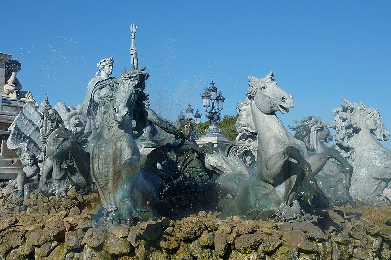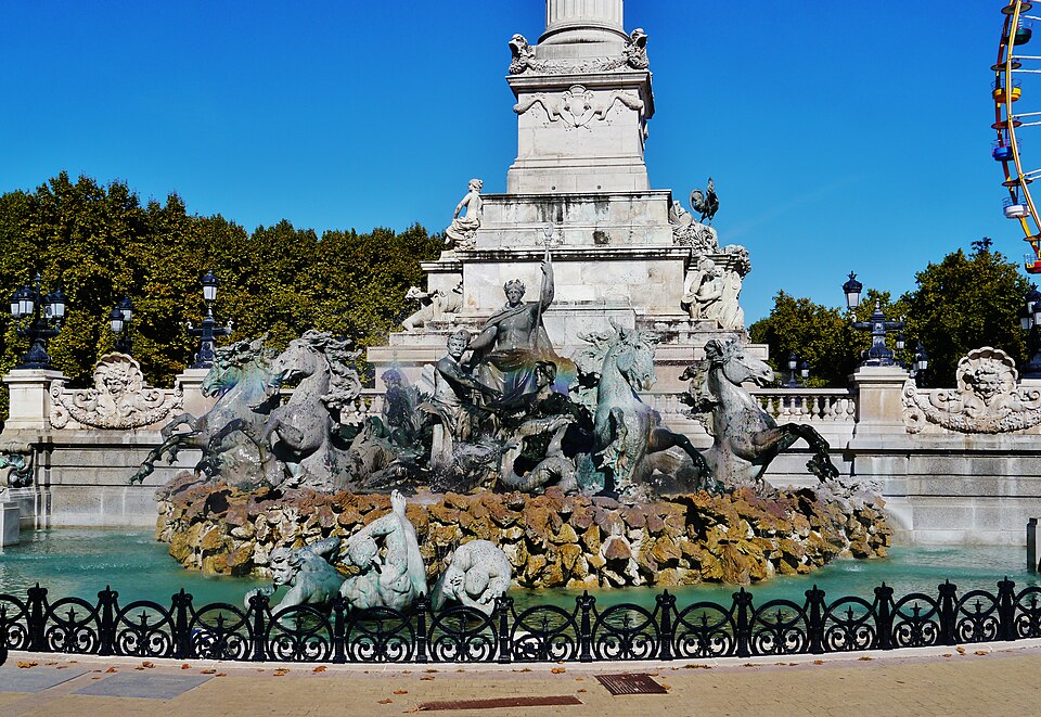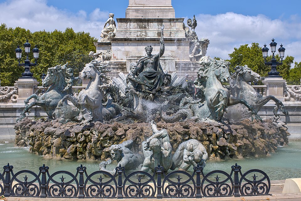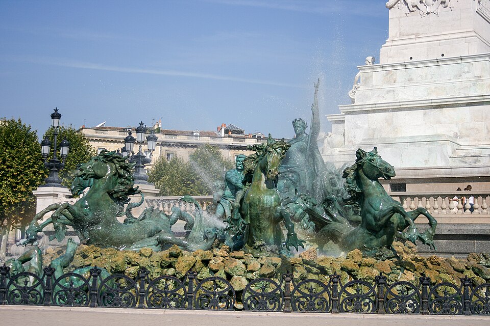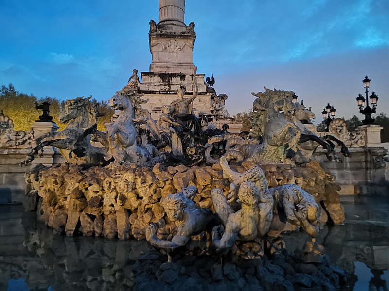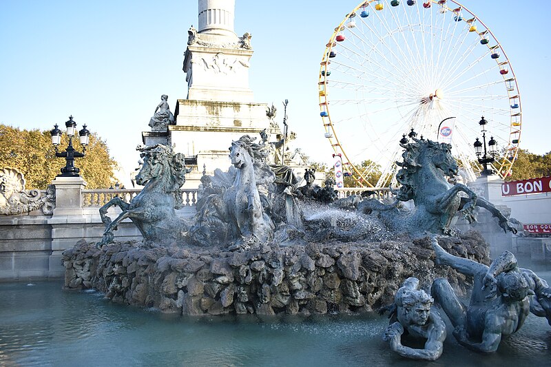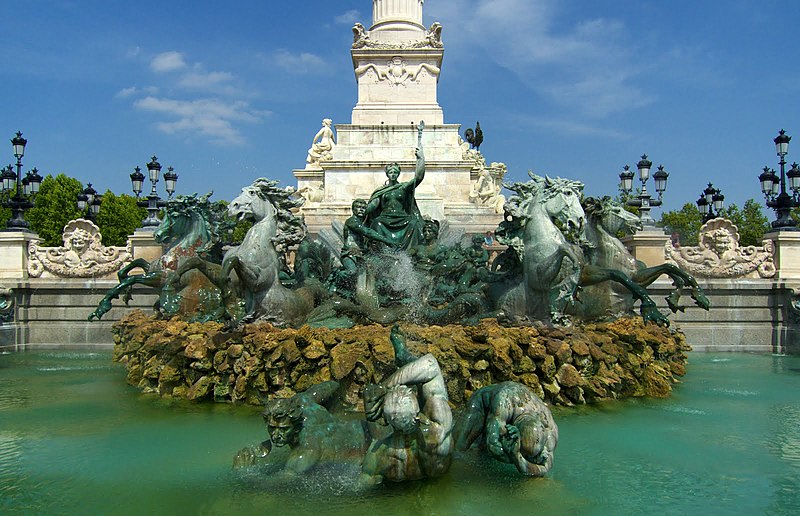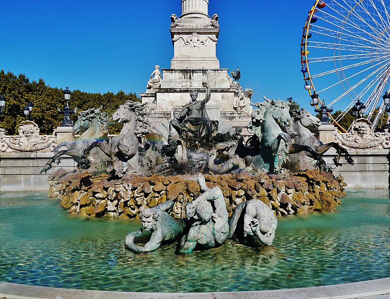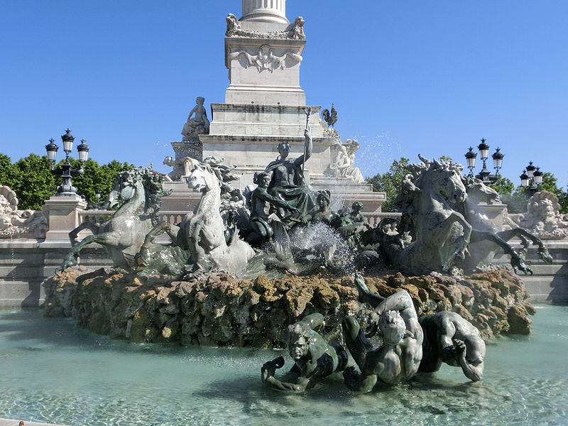 Dès 1868, un premier projet de monument par l'architecte Julien Guadet pour la place Dauphine (actuelle place Gambetta) fut présenté au Salon de Paris en 1870 mais n'aboutit pas. En 1881, le conseil municipal décide d'ériger un monument en mémoire des députés girondins, et un concours est ouvert en 1887; le premier prix est attribué en 1888 à Jules Labatut et Pierre Esquié, mais le projet retenu après révision fut celui présenté sous le nom de Gloria victis par Dumilâtre et l'architecte Henri Deverin, repris ensuite par Dumilâtre et Victor Rich. Parallèlement, une fontaine monumentale commandée à Bartholdi ne fut pas acquise par Bordeaux et achetée par Lyon, ce qui conduisit la municipalité à regrouper les projets et à concevoir un monument-fontaine place des Quinconces, avec l'adjonction de deux bassins. L'emplacement choisi correspond à l'intersection de l'axe longitudinal de la place et du prolongement du cours du XXX-Juillet; les crédits sont votés le 14 novembre 1893 et les travaux commencent en 1894 pour s'achever en 1902.