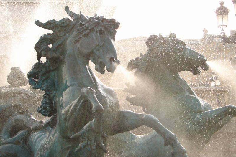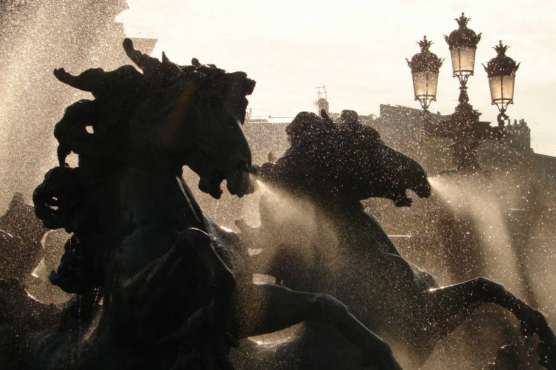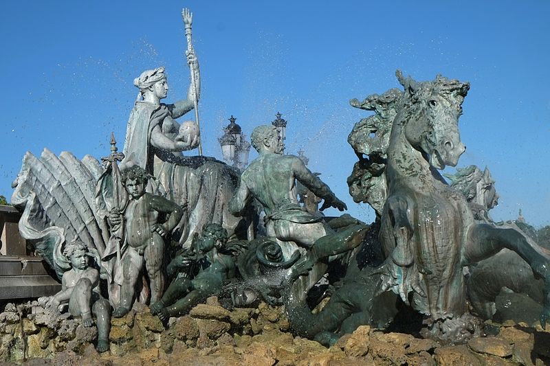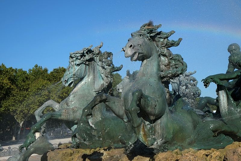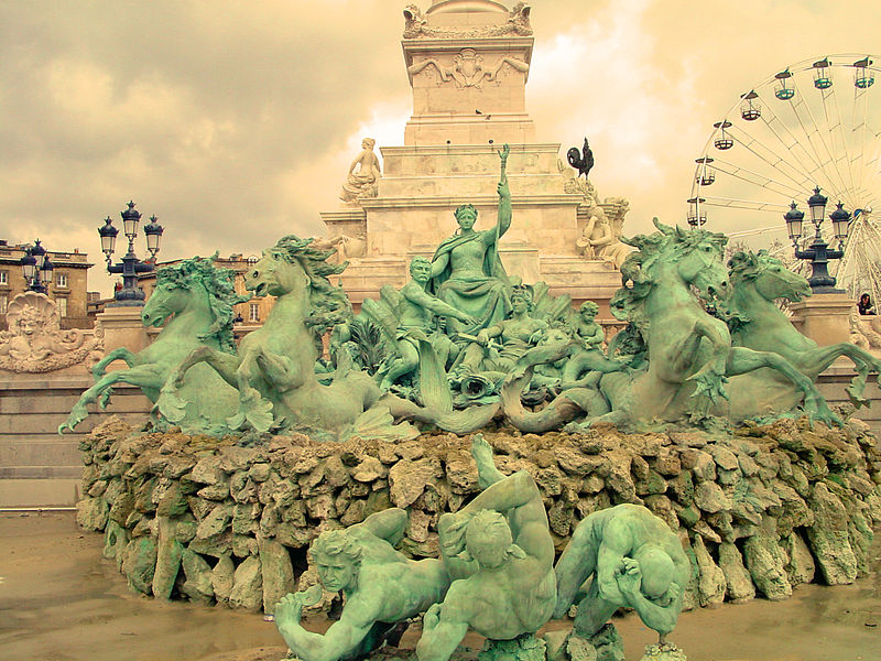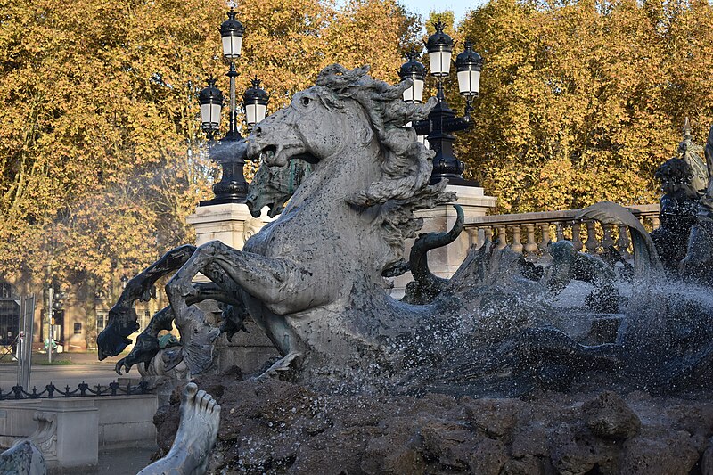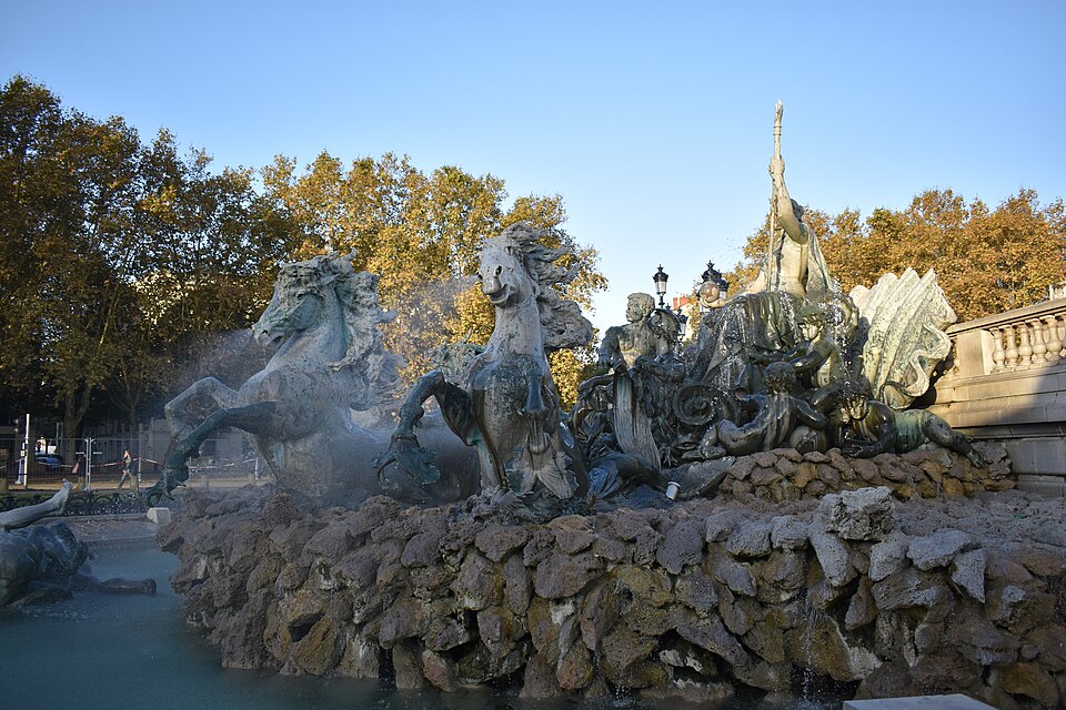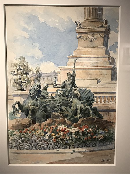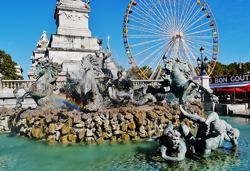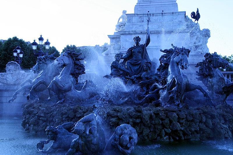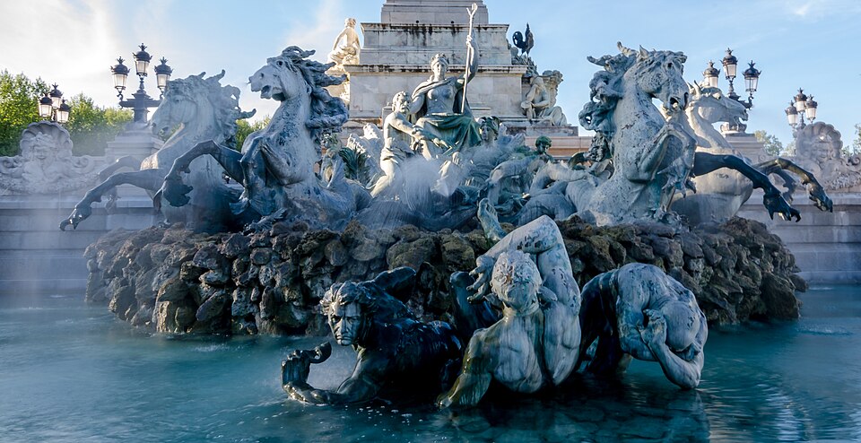 Dès 1868, un premier projet de monument par l'architecte Julien Guadet pour la place Dauphine (actuelle place Gambetta) fut présenté au Salon de Paris en 1870 mais n'aboutit pas. En 1881, le conseil municipal décide d'ériger un monument en mémoire des députés girondins, et un concours est ouvert en 1887; le premier prix est attribué en 1888 à Jules Labatut et Pierre Esquié, mais le projet retenu après révision fut celui présenté sous le nom de Gloria victis par Dumilâtre et l'architecte Henri Deverin, repris ensuite par Dumilâtre et Victor Rich. Parallèlement, une fontaine monumentale commandée à Bartholdi ne fut pas acquise par Bordeaux et achetée par Lyon, ce qui conduisit la municipalité à regrouper les projets et à concevoir un monument-fontaine place des Quinconces, avec l'adjonction de deux bassins. L'emplacement choisi correspond à l'intersection de l'axe longitudinal de la place et du prolongement du cours du XXX-Juillet; les crédits sont votés le 14 novembre 1893 et les travaux commencent en 1894 pour s'achever en 1902.