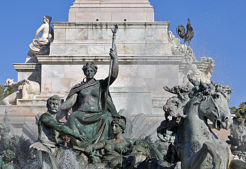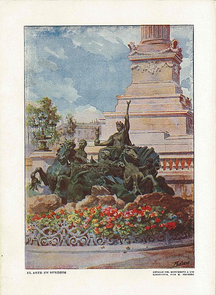 Le Monument élevé à la mémoire des Girondins se dresse au centre de l'extrémité occidentale, en hémicycle, de la place des Quinconces à Bordeaux. Projeté dès 1881, conçu par le sculpteur Dumilâtre et réalisé sous la direction de l'architecte Victor Rich entre 1893 et 1902, il mesure cinquante mètres. Il se compose d'une imposante colonne à chapiteau corinthien surmontée d'une statue en bronze représentant le Génie de la Liberté brisant ses fers, et d'un large socle encadré de deux bassins-fontaines. Vers l'esplanade, la Tribune présente le coq gaulois flanqué de L'Histoire et de L'Éloquence ; en vis-à-vis, la figure assise de la Ville de Bordeaux domine les allégories fluviales de la Garonne et de la Dordogne. Les bassins accueillent deux groupes monumentaux en bronze : Le Triomphe de la République, côté Grand Théâtre, et Le Triomphe de la Concorde, côté Jardin Public, complétés par des scènes allégoriques au pied des chars.