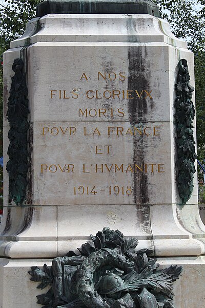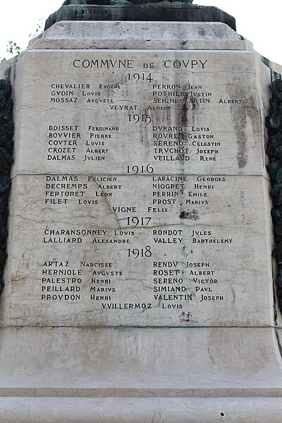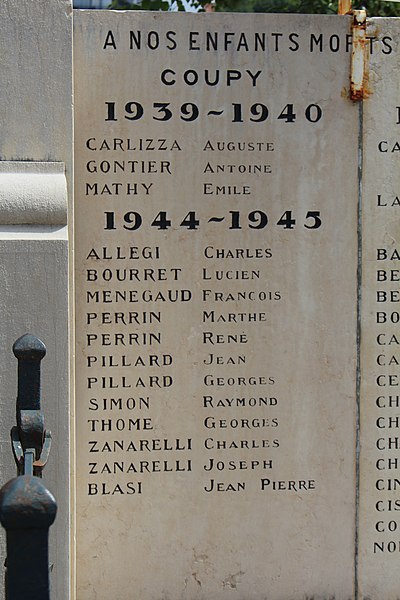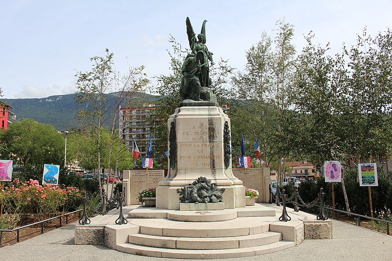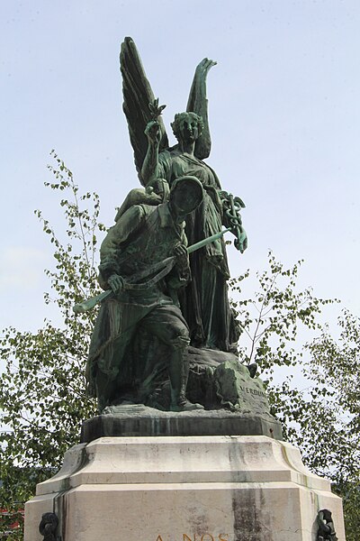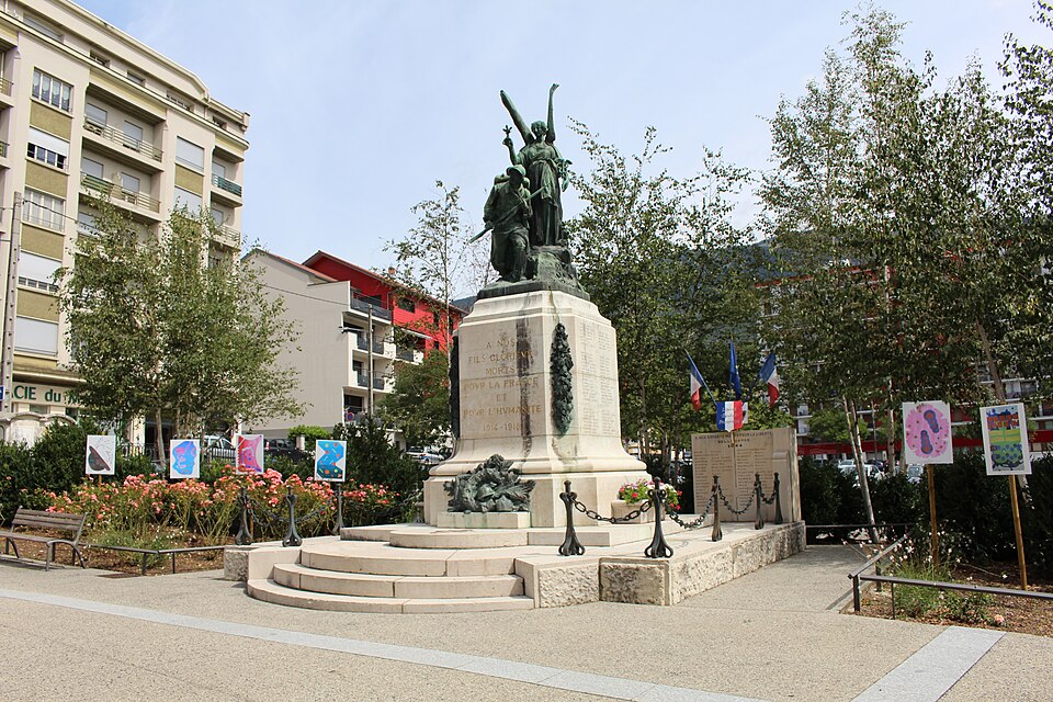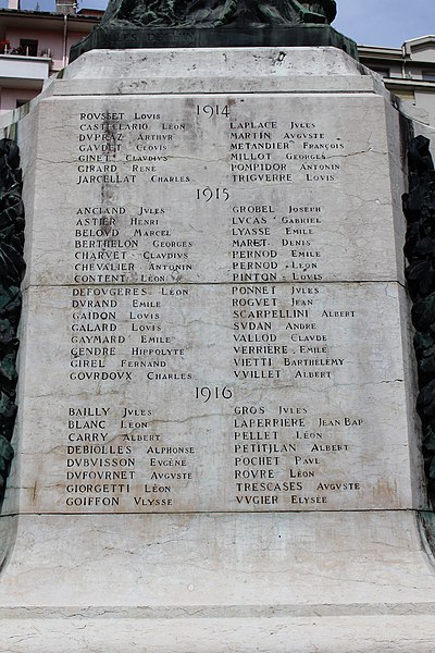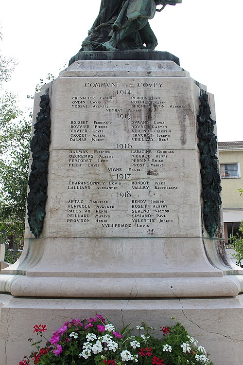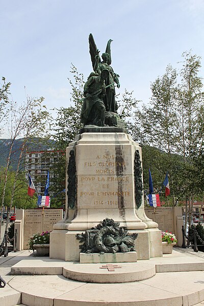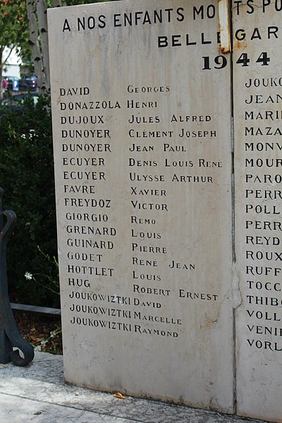 Le monument aux morts de Bellegarde-sur-Valserine, situé place Carnot dans la commune de Valserhône (Ain), a été réalisé par l'architecte en chef des monuments historiques Lucien Sallez et le sculpteur Jules Déchin, les bronzes ayant été coulés par la fonderie Durenne. Déchin, connu pour ses monuments aux morts produits en série — dont le Poilu mourant — faisait souvent appel à des éléments catalogués et fondus par Durenne ; cependant, des recherches dans les archives du fondeur montrent que le monument de Bellegarde constitue une œuvre originale au sein de leur corpus. Le monument a été inauguré le 3 juin 1923 et est inscrit au titre des monuments historiques depuis le 13 mars 2019. Il se compose d'un socle surmonté d'une sculpture représentant un poilu au combat placé sous la protection de la Victoire, figurée par une femme ailée tenant un rameau d'olivier. Sur la base figure la mention Verdun. Les noms des morts de Bellegarde pendant la Grande Guerre sont gravés sur les faces avant, gauche et droite du socle, tandis que la face arrière porte ceux de l'ancienne commune de Coupy. Certains morts de Coupy, en particulier ceux du hameau de Vanchy (ancien chef-lieu de la commune), ne figurent pas sur ce monument, leurs noms étant inscrits sur un monument distinct érigé au cœur du hameau et inauguré le 2 octobre 1921.