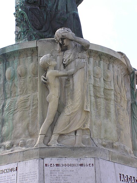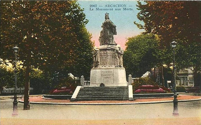 Le Monument aux morts d'Arcachon, réalisé par le sculpteur Alexandre Maspoli en 1924, se situe place de Verdun (ancien rond‑point Deganne), à Arcachon (Gironde). D'inspiration pacifiste, il est dominé par une Victoire soutenue par des soldats sans visage, représentés emmurés dans leurs linceuls. Le décor comprend également des pleureuses symbolisant le deuil des pères, maris ou enfants disparus pendant la Première Guerre mondiale, ainsi que les figures d'un vieillard résinier et d'une ostréicultrice du bassin d'Arcachon. Des inscriptions à caractère pacifiste, notamment « PAX - LABOR » et « POUR LE DROIT - POUR LA PAIX », ceinturent le monument. La Première Guerre mondiale (1914‑1918) mobilisa plus de 60 millions de soldats, entraîna environ 9 millions de morts et près de 8 millions d'invalides. En novembre 1919, l'architecte Roger‑Henri Expert proposa pour Arcachon un projet non réalisé, consistant en un glaive reposant sur deux colonnes de pierre blanche portant la liste des morts de la commune. Alexandre Maspoli remporta le concours en 1922 ; outre sa carrière de sculpteur, il était connu comme athlète et champion du monde d'haltérophilie. Le monument fut inauguré le 11 novembre 1924 en présence du maire Ramon Bon, du député Pierre Dignac et de l'ancien maire James Veyrier Montagnères.