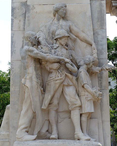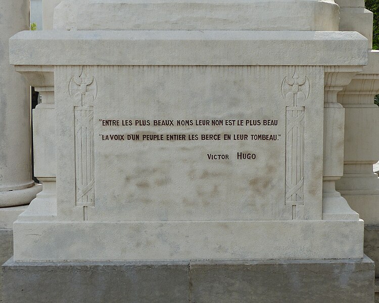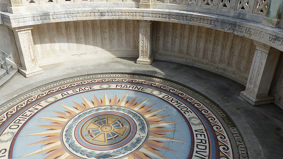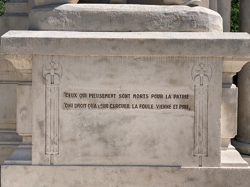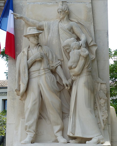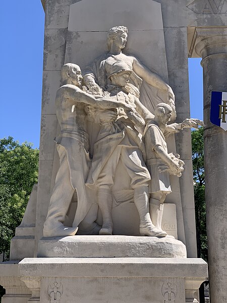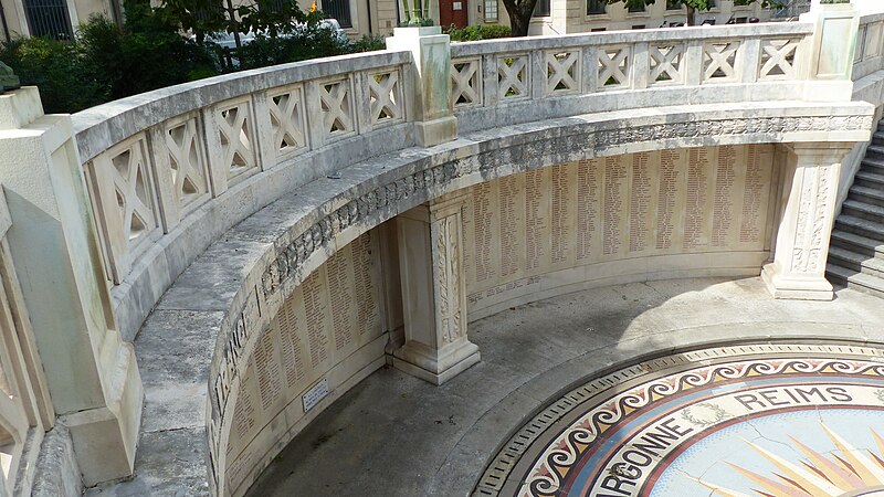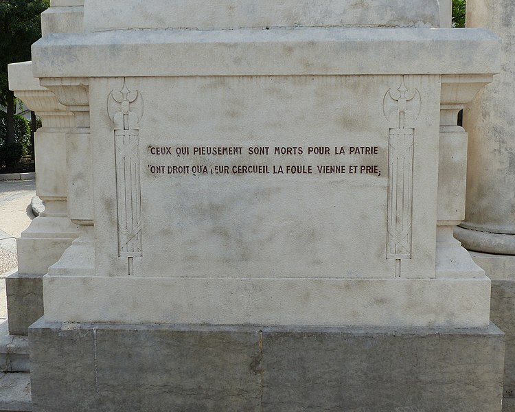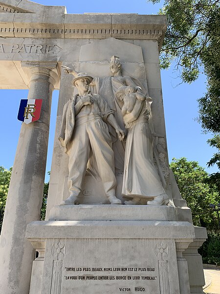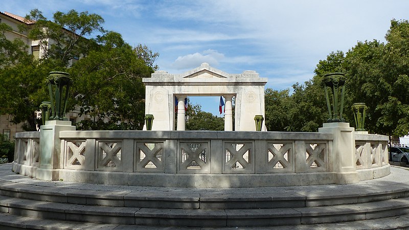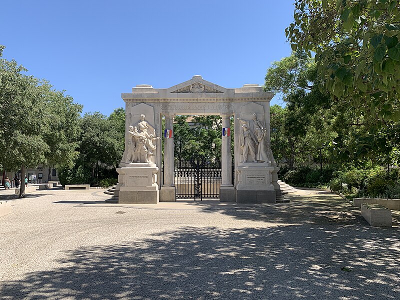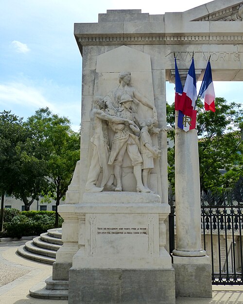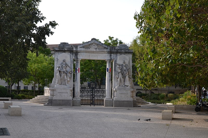 Le monument aux morts de Nîmes, dans le Gard, est consacré aux soldats de la commune morts lors des conflits du XXe siècle. Il se dresse au centre de la ville, sur le square du Onze-Novembre-1918, non loin des arènes. Il prend la forme d'une crypte à ciel ouvert, circulaire, dotée d'un portique d'entrée encadré par deux colonnes qui supportent chacune un haut-relief : à gauche la Patrie victorieuse, à droite la ville de Nîmes. Le portique est fermé par une grille en fer forgé. Le sol de la crypte est couvert d'une mosaïque qui mentionne certaines batailles de la Première Guerre mondiale. Sur le pourtour figurent les noms des soldats nîmois morts lors des conflits : 2 083 pour la Première Guerre mondiale, 2 au Levant, 210 pour la Seconde Guerre mondiale, 7 en Indochine, 54 en Algérie et 1 sur les théâtres d'opérations extérieurs. Le monument, en calcaire, mesure environ 7 mètres de hauteur. Les travaux ont débuté le 29 avril 1923 à l'emplacement d'un monument à Paul Soleillet, déplacé à cette occasion. L'architecture est due à Henri Castan et la sculpture à Auguste Carli ; le monument a été inauguré le 13 octobre 1924. Il a été inscrit au titre des monuments historiques le 18 octobre 2018 et fait partie d'un ensemble de 42 monuments aux morts de la région Occitanie protégés à cette date pour leur valeur architecturale, artistique ou historique.