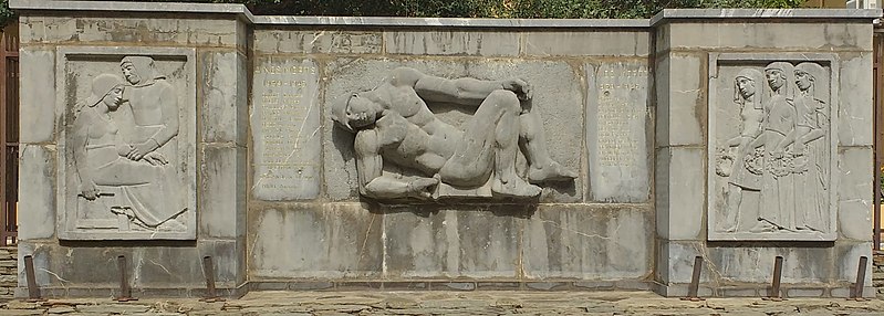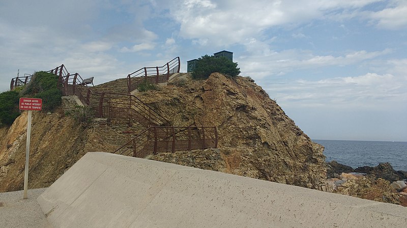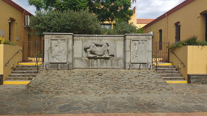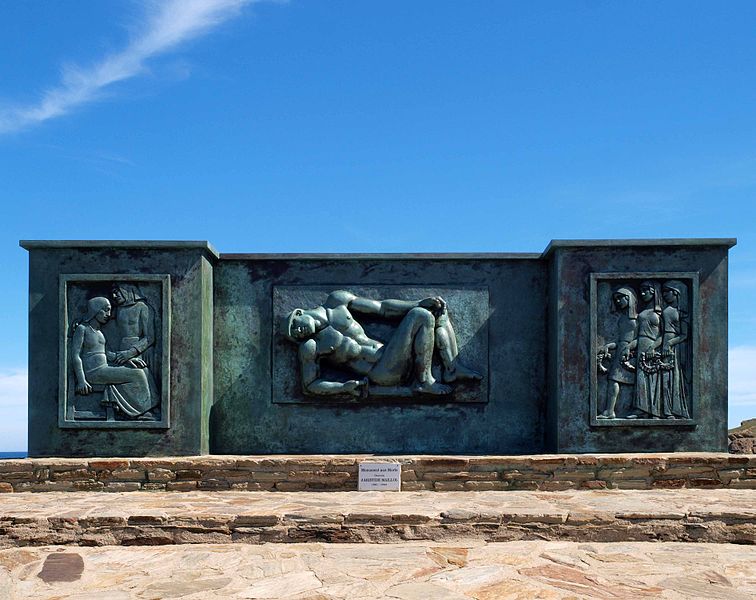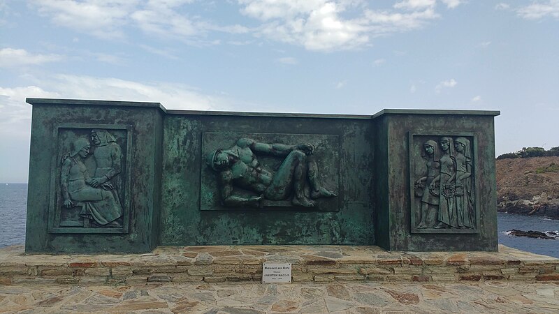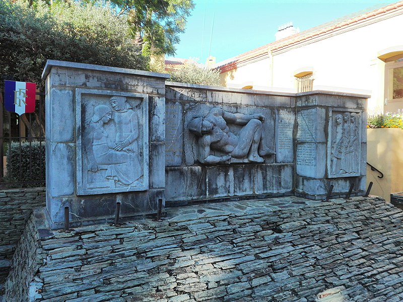 Le monument aux morts de Banyuls-sur-Mer, œuvre du sculpteur Aristide Maillol, se présente comme une composition architecturale en pierre en trois parties. Il était à l'origine placé sur l'Illa Grossa, un promontoire rocheux face à la mer, avant d'être déplacé en 1989 pour le protéger des intempéries et remplacé sur le site maritime par une copie en bronze. Depuis 1989, l'original en pierre est installé place Dina-Vierny, en centre-ville, à quelques décamètres de la plage et abrité des embruns par les bâtiments de la mairie et de la poste. Banyuls-sur-Mer se situe sur la côte Vermeille, où la baie s'ouvre entre le cap d'Ona et l'Illa Grossa, le chemin piétonnier devant le laboratoire Arago menant à ce promontoire qui offre une vue panoramique sur la mer et la réserve naturelle de Cerbère-Banyuls.