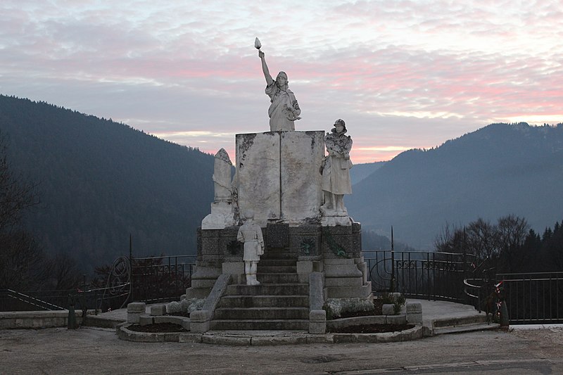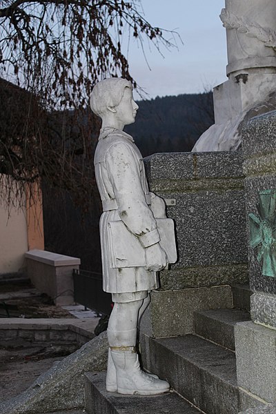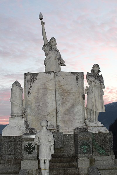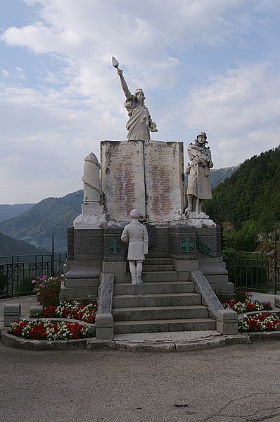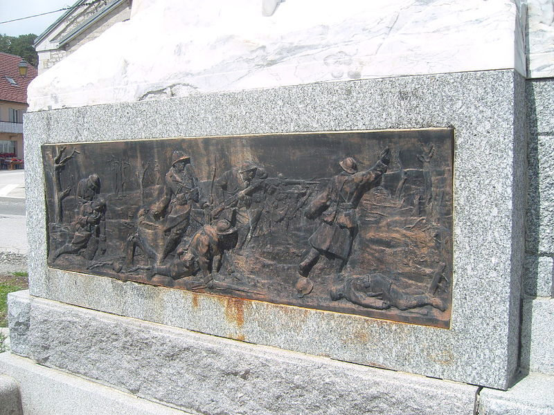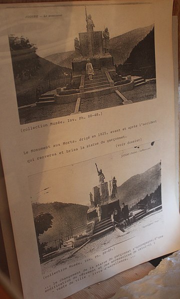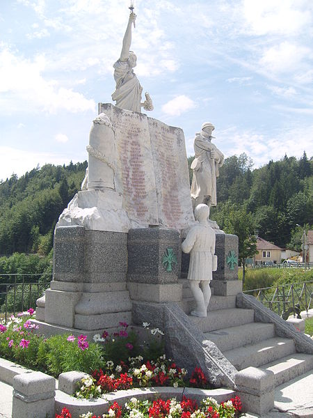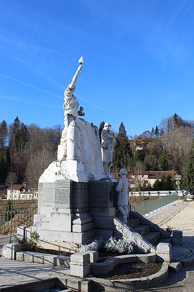 Le monument aux morts de Jougne, réalisé par l'architecte Paul Robbe en 1924, commémore les soldats tombés lors de la Première Guerre mondiale. Un socle en granit porte un groupe sculpté en marbre de Carrare composé de cinq éléments : au centre un livre gravé des noms des 50 soldats de la commune morts durant la Première Guerre mondiale et de deux soldats morts lors de la Seconde, surmonté de la statue de Marianne coiffée du bonnet phrygien, brandissant un flambeau et tenant une couronne de laurier. À gauche du livre se trouve un obus entouré d'une guirlande de laurier ; à droite, un poilu au repos regarde les passants. Sur le dernier degré du socle, un écolier, cartable sous le bras, tourne le dos à la place pour lire la liste des morts. Le dos du socle présente un bas-relief intitulé "L'attaque", signé Albert David et réalisé par les fonderies et ateliers de construction du Val d'Osne. Paul Robbe avait initialement soumis deux projets en plâtre, dont l'un, jugé trop sobre, n'a pas été retenu ; les deux maquettes sont exposées au musée municipal. Le conseil municipal a approuvé les plans de Paul Robbe le 15 septembre 1923, puis, le 29 mars 1924, a autorisé un marché de gré à gré avec l'entrepreneur Le Morvan pour l'ensemble des travaux (socle, sculptures, reliefs en métal, inscriptions dorées, poses) pour un montant de 56 500 F. Le 23 octobre 1924, un nouveau marché de gré à gré a été passé avec l'entrepreneur Joseph Saintot pour les travaux de fondation et le surplomb en béton armé pour un montant de 5980F80. Le bas-relief "L'attaque" est l'œuvre du sculpteur Albert David ; les autres éléments sculptés ont été réalisés dans le cadre de ces marchés, l'entrepreneur Le Morvan ayant assuré l'exécution matérielle. En 1925 la statue de l'écolier ayant été endommagée, le sculpteur Georges Laëthier de Besançon a réalisé la nouvelle figure, modifiant la pose et le port du cartable. Paul Robbe a fait poser son fils Henri pour le modèle de l'écolier. Le monument, situé à Jougne dans le Doubs, a été inscrit au titre des monuments historiques en 2004. Deux maquettes en plâtre et des documents photographiques montrant la restauration de l'écolier sont conservés au musée municipal, et le monument a fait l'objet d'une réfection en 2022.