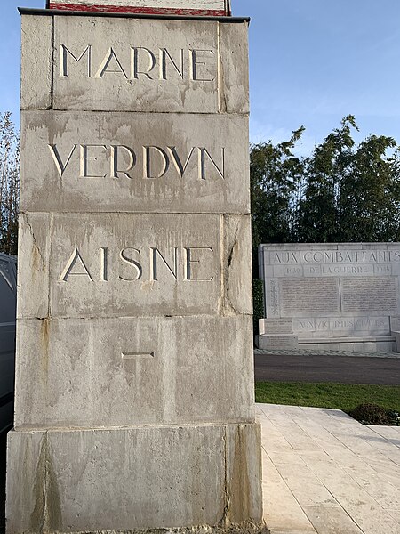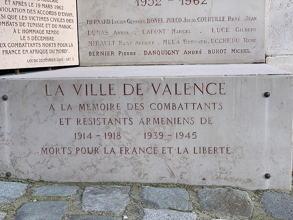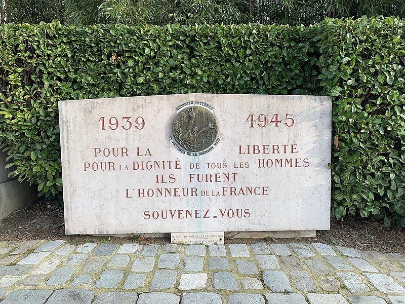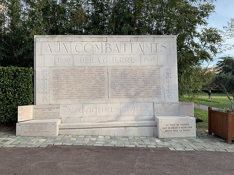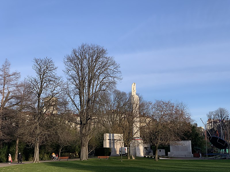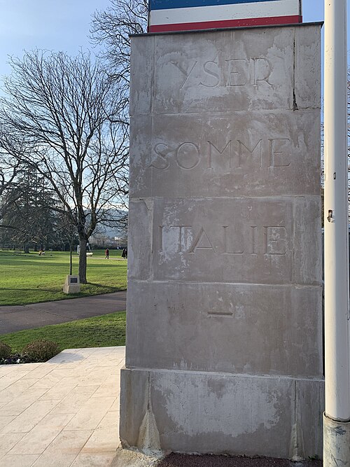Le monument aux morts de la Première Guerre mondiale, composé de ses trois éléments (double fût de colonne surmonté d'une Victoire ailée, y compris le dallage au sol conduisant au fût, groupe de trois stèles et cénotaphe), le monument aux morts de la Seconde Guerre mondiale et le monument aux déportés, aux internés et aux victimes de la barbarie nazie, situés dans le parc Jouvet, sur la parcelle n° 10 de la section CI du cadastre, tels que figurant en violet sur le plan annexé à l'arrêté : classement par arrêté du 25 mars 2022